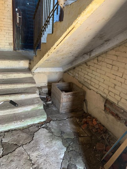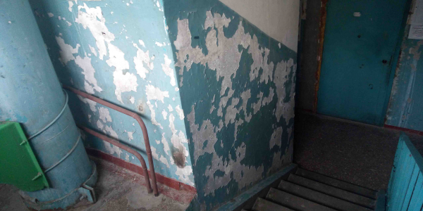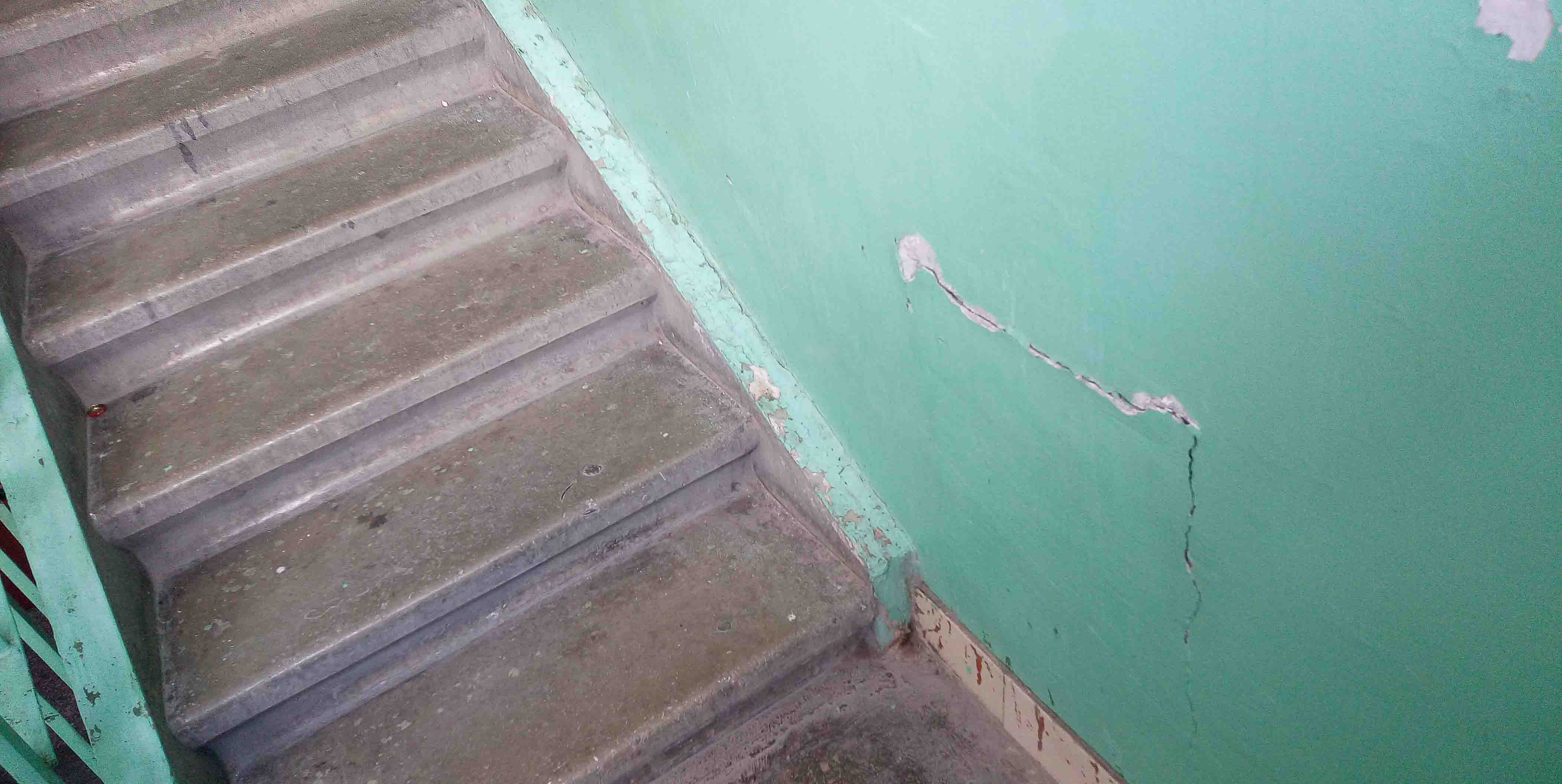 осыпается отделка с потолков лестничных площадок. местами в стенах присутствуют трещины.состояние 1 этажа страшнее остальных. Статус: