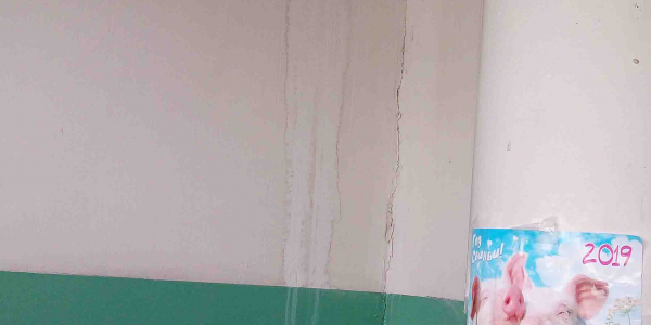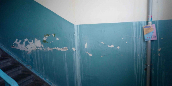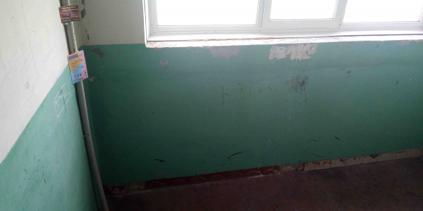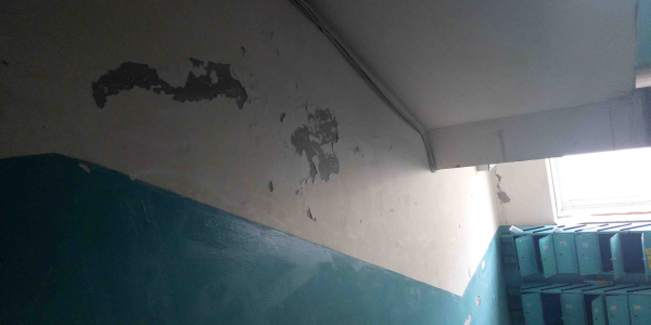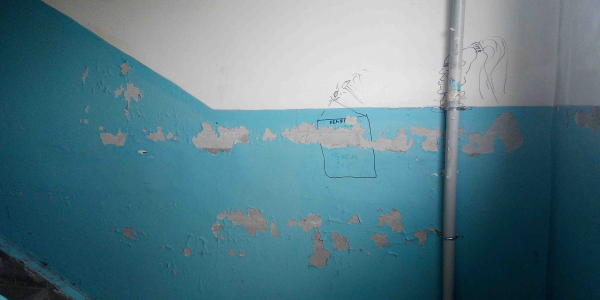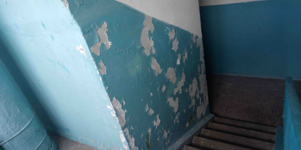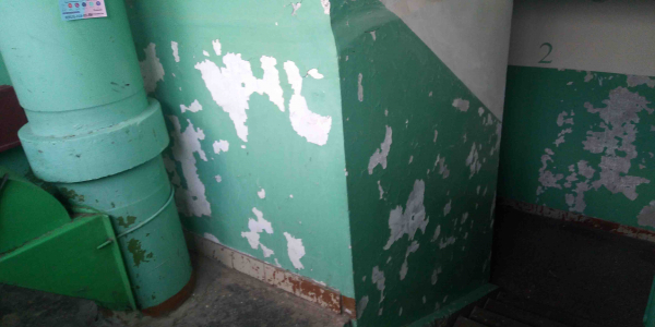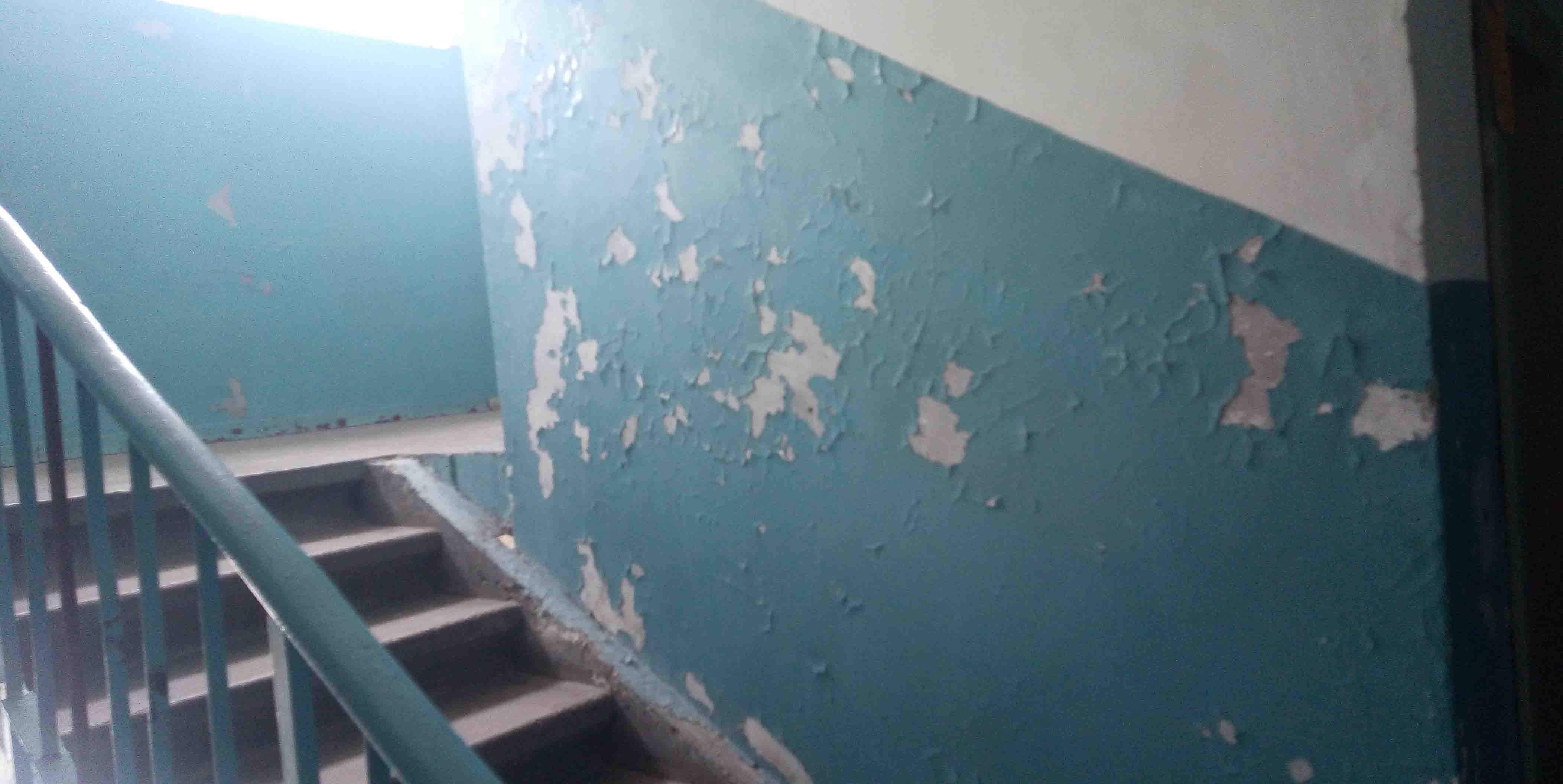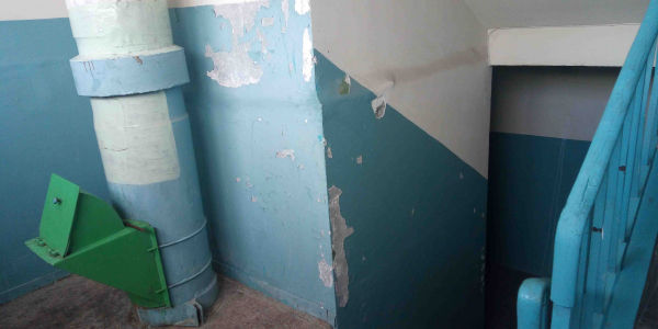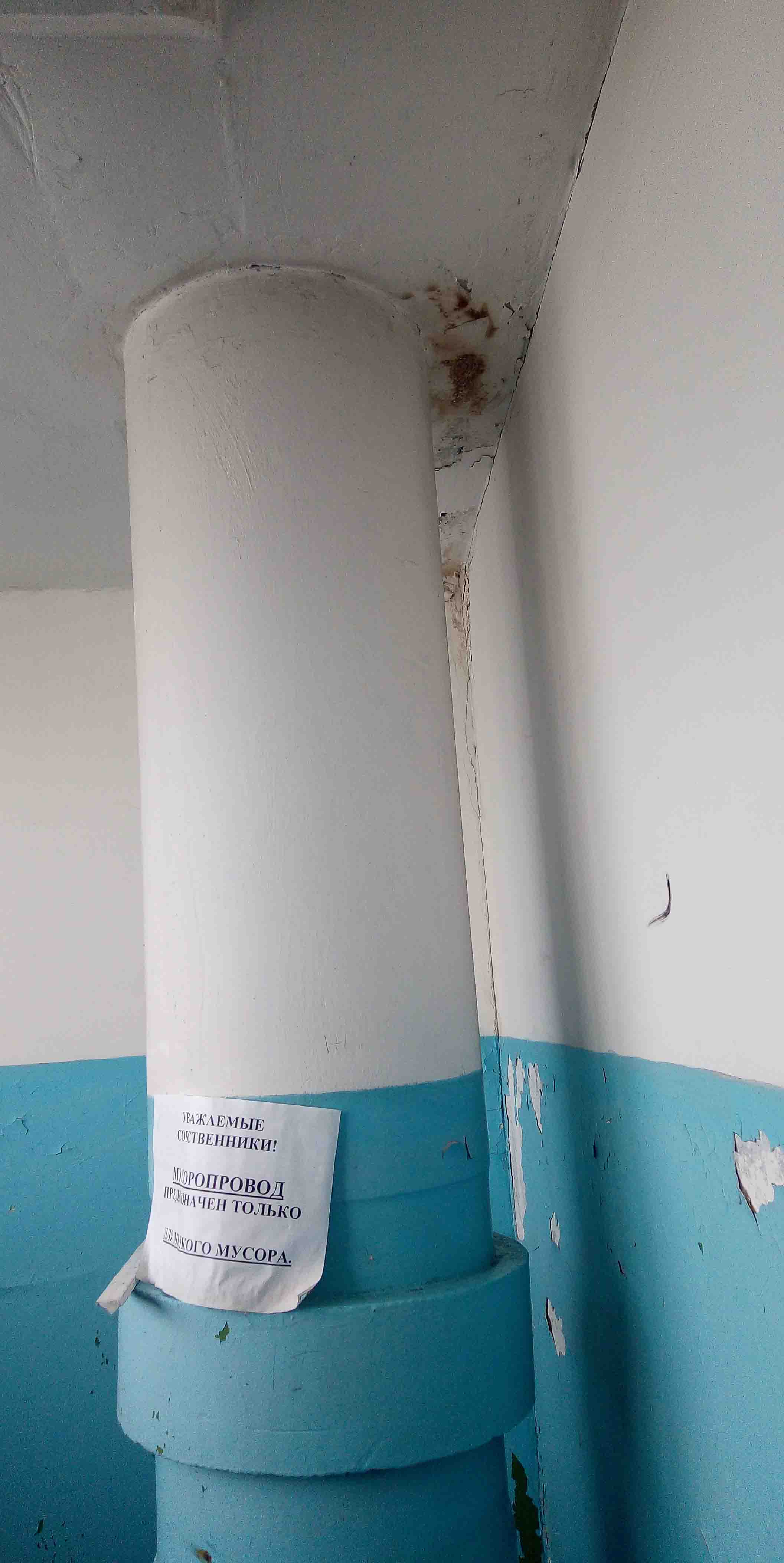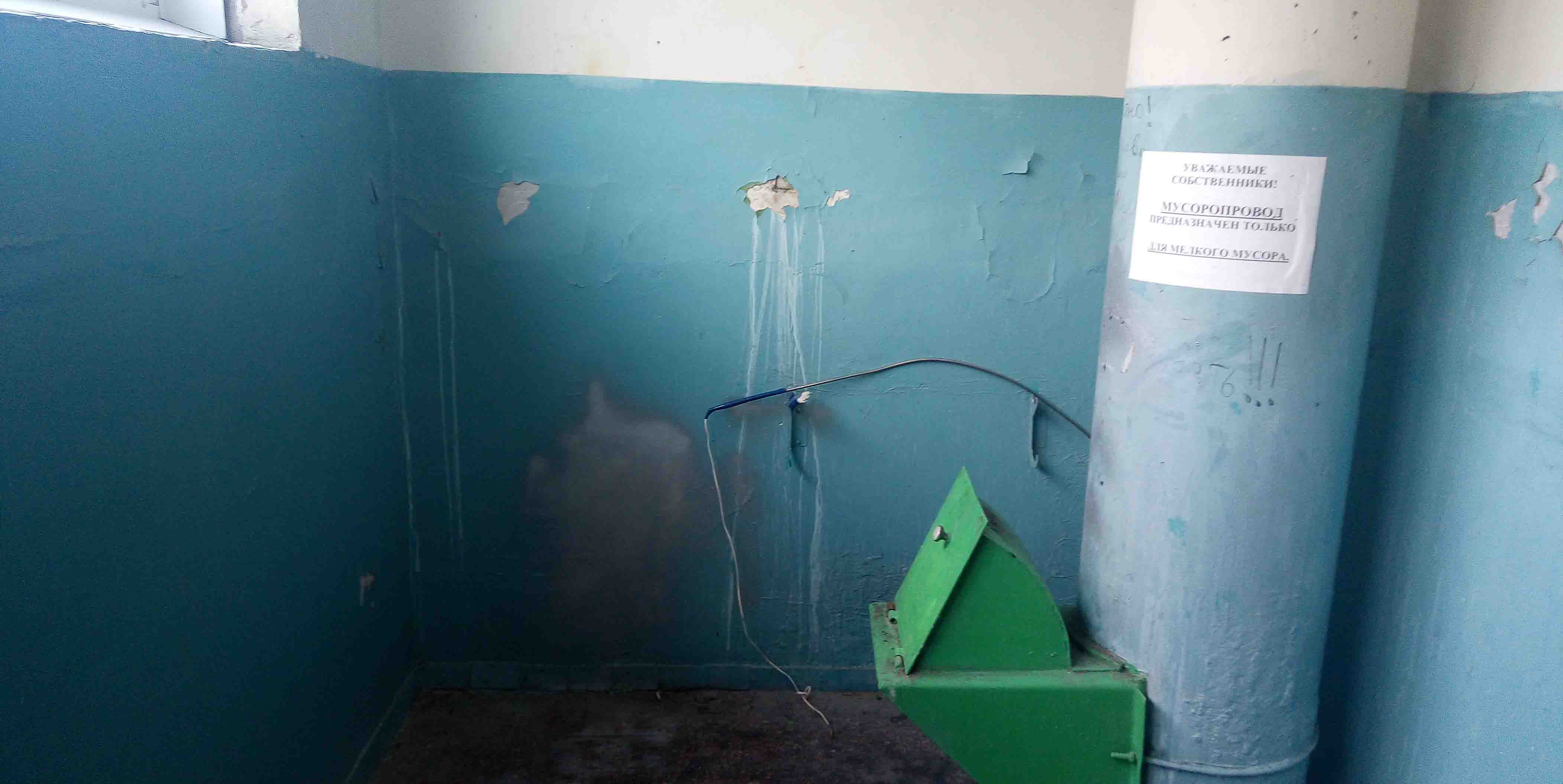 со стен по этажам активно и очень сильно отваливается покраска и отделка, в том числе и с мусорной шахты.