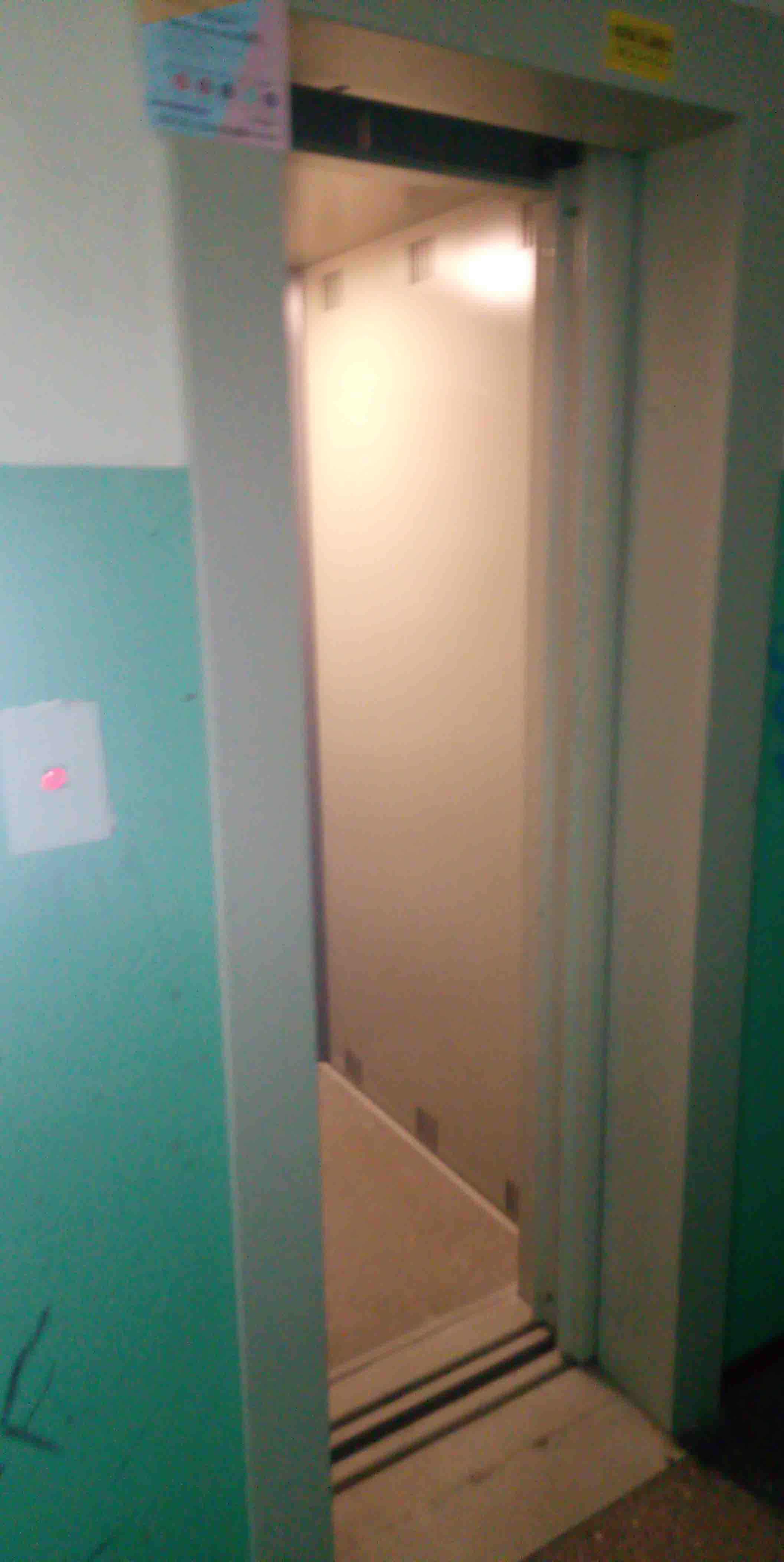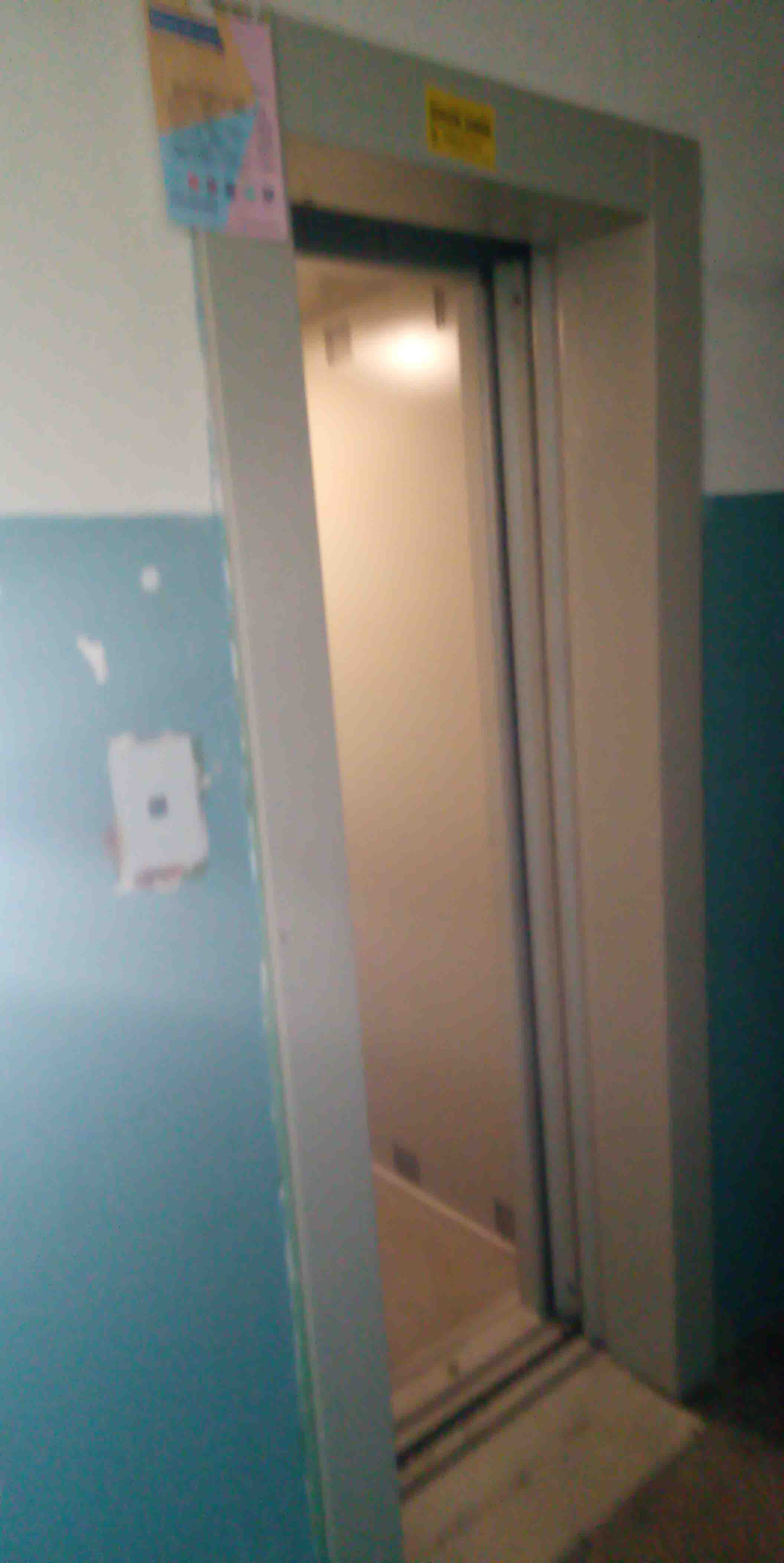лифт работает. по всем этажам сильно облезшие стены, начиная с тамбура. также облезшие перила лестниц и марши.