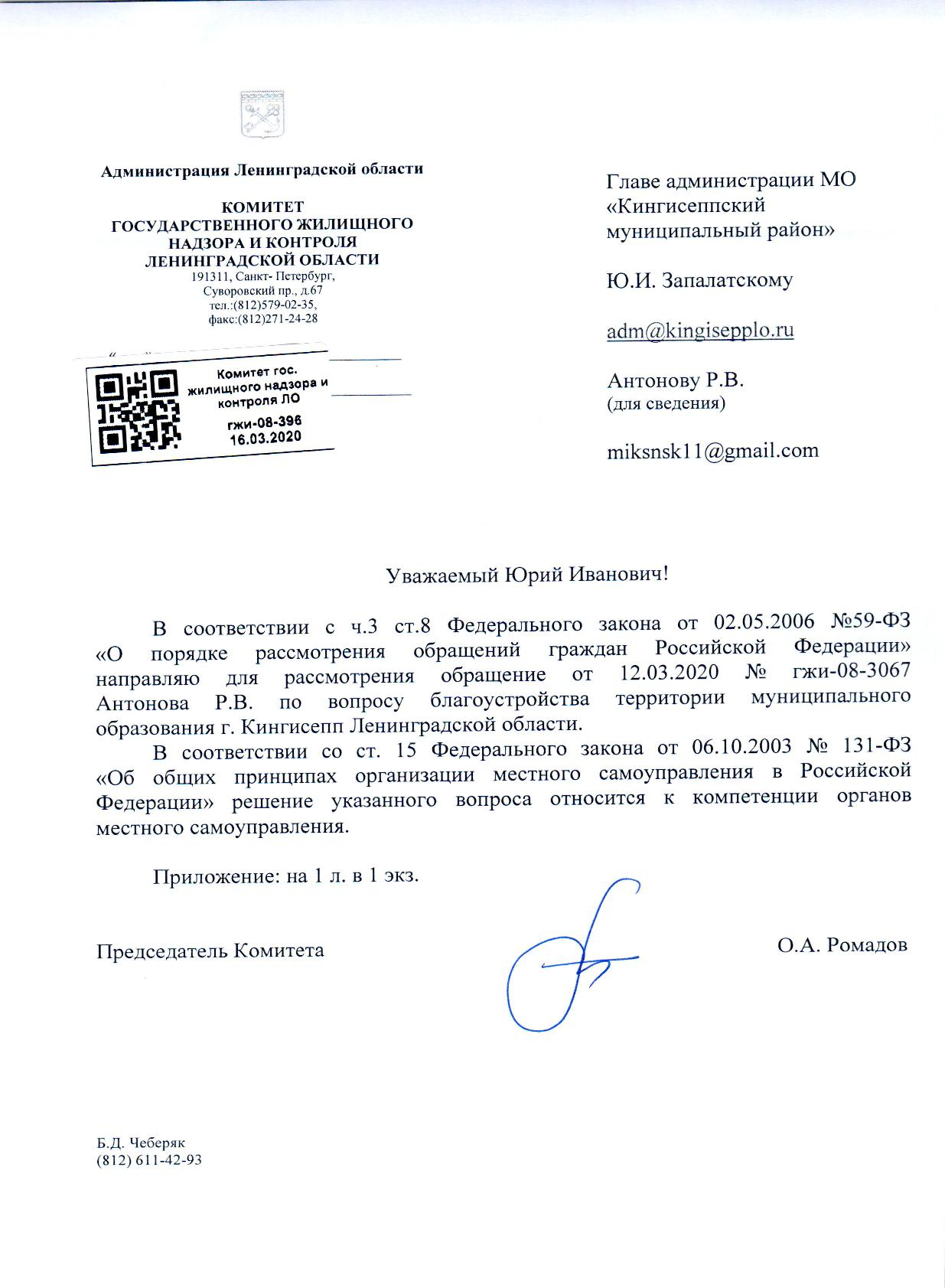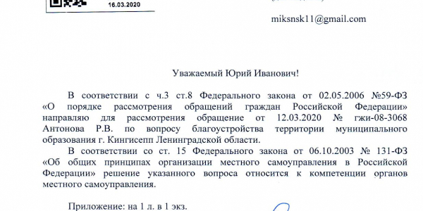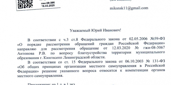Номер жалобы:64330 Тип жалобы:Иные проблемы ЖКХ Название объекта: Регион:Ленинградская область Город:Кингисепп Адрес:Кингисепп, Крикковское шоссе, 3 Описание жалобы:ГЖИПо ответом все норм. У жителей. И эти вопросы не к ук. Статус: