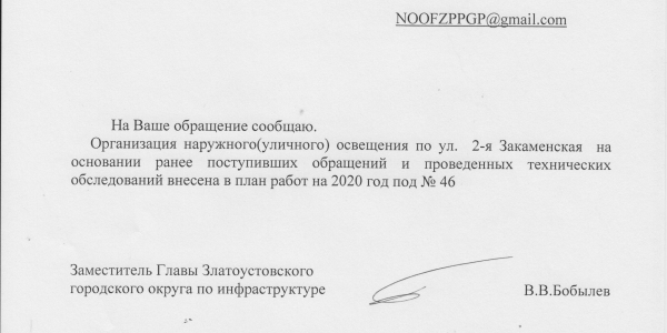 Данную Жалобу От Жителей Метзавода Направлю В Прокуратуру Челябинской Области и Надзорные Органы с целью Обязать Администрацию Города Златоуста сделать Освещение и Жителям Метзавода. Статус:
