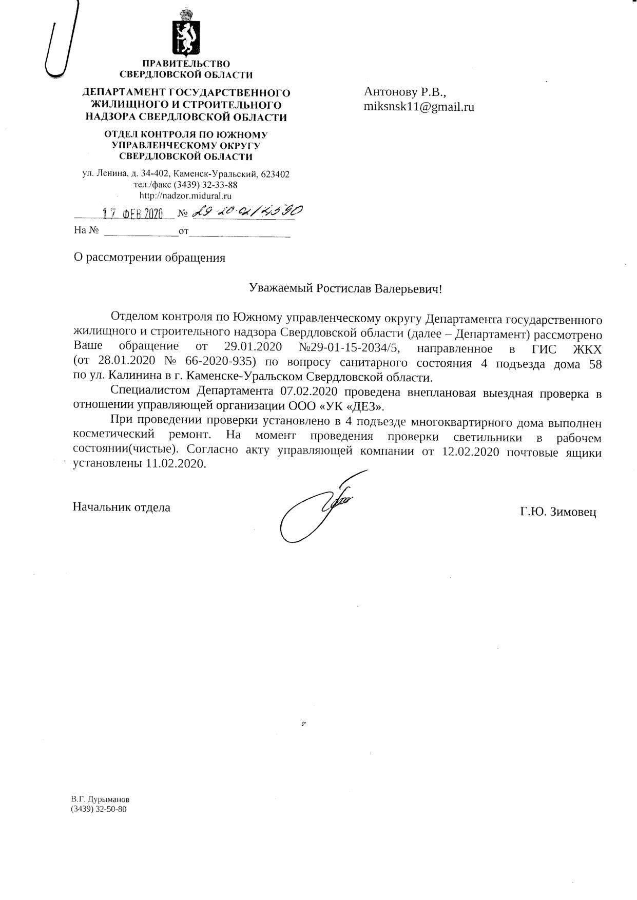 Номер жалобы:63415 Тип жалобы:Иные проблемы ЖКХ Название объекта: Регион:Свердловская область Город:Каменск-Уральский Адрес:улица Калинина, 58 Описание жалобы:Во время капитального ремонта из подъезда четвертого подъезда дома по улице Калинина д. 58 были сняты почтовые ящики принадлежащие жильцам этого дома. Прошу обеспечить установку почтовых ящиков. Статус: