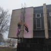 Граффити на стене здания с обратной стороны возле пожарной лестницы! Прошу убрать данную надпись.