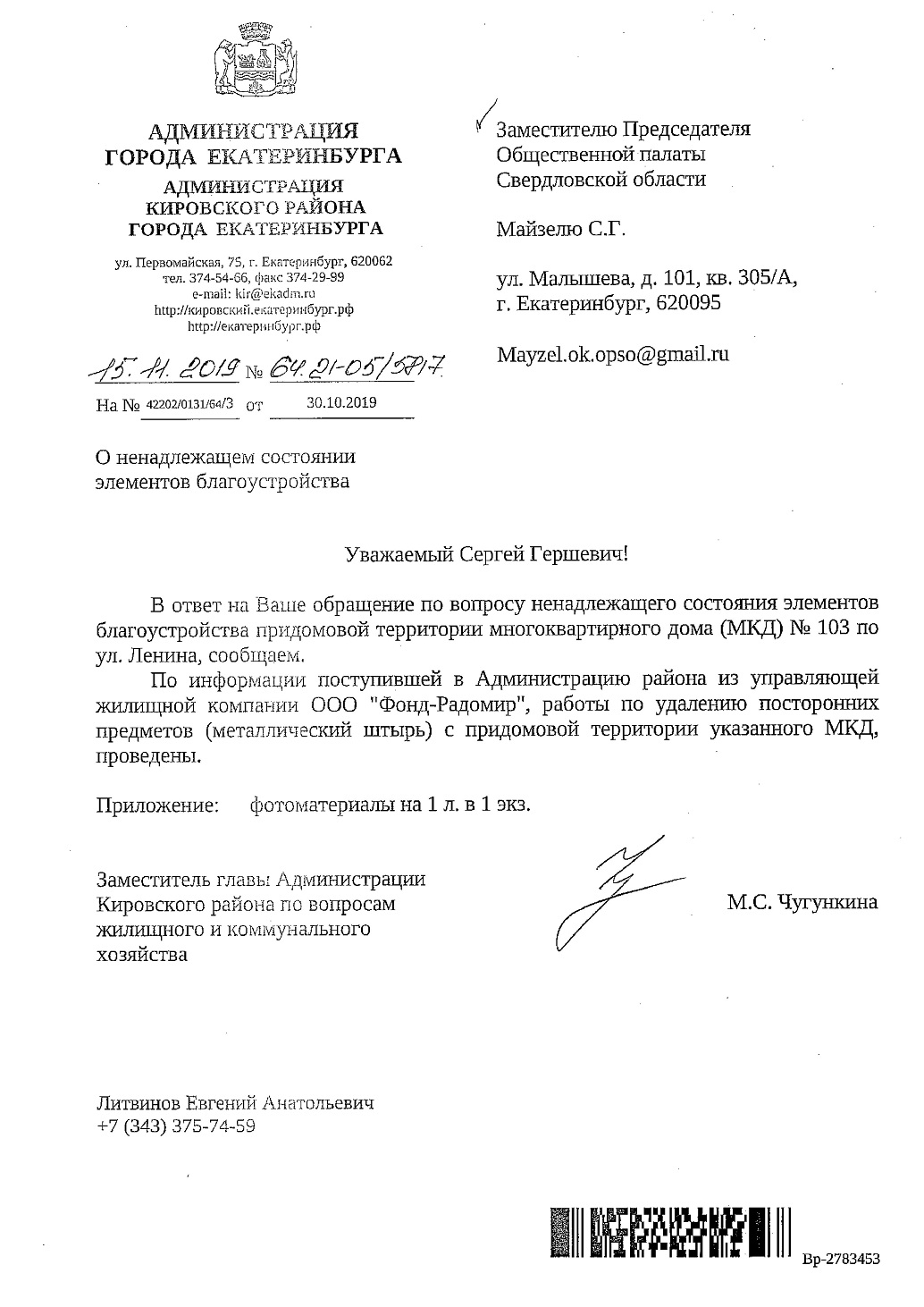 Номер жалобы:61524 Тип жалобы:Иные проблемы ЖКХ Название объекта: Регион:Свердловская область Город:Екатеринбург Адрес:проспект Ленина, 103 Описание жалобы:Торчит металлический штырь в арке. Прошу убрать. Статус: