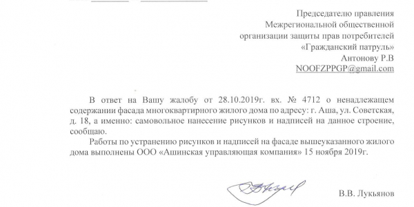Номер жалобы:61562 Тип жалобы:Иные проблемы ЖКХ Название объекта: Регион:Челябинская область Город:Аша Адрес:Советская улица, 18 Описание жалобы:Нарисовали причине место, звонил в ЖКХ, не закрасили, прошло уже 2 недели Статус: