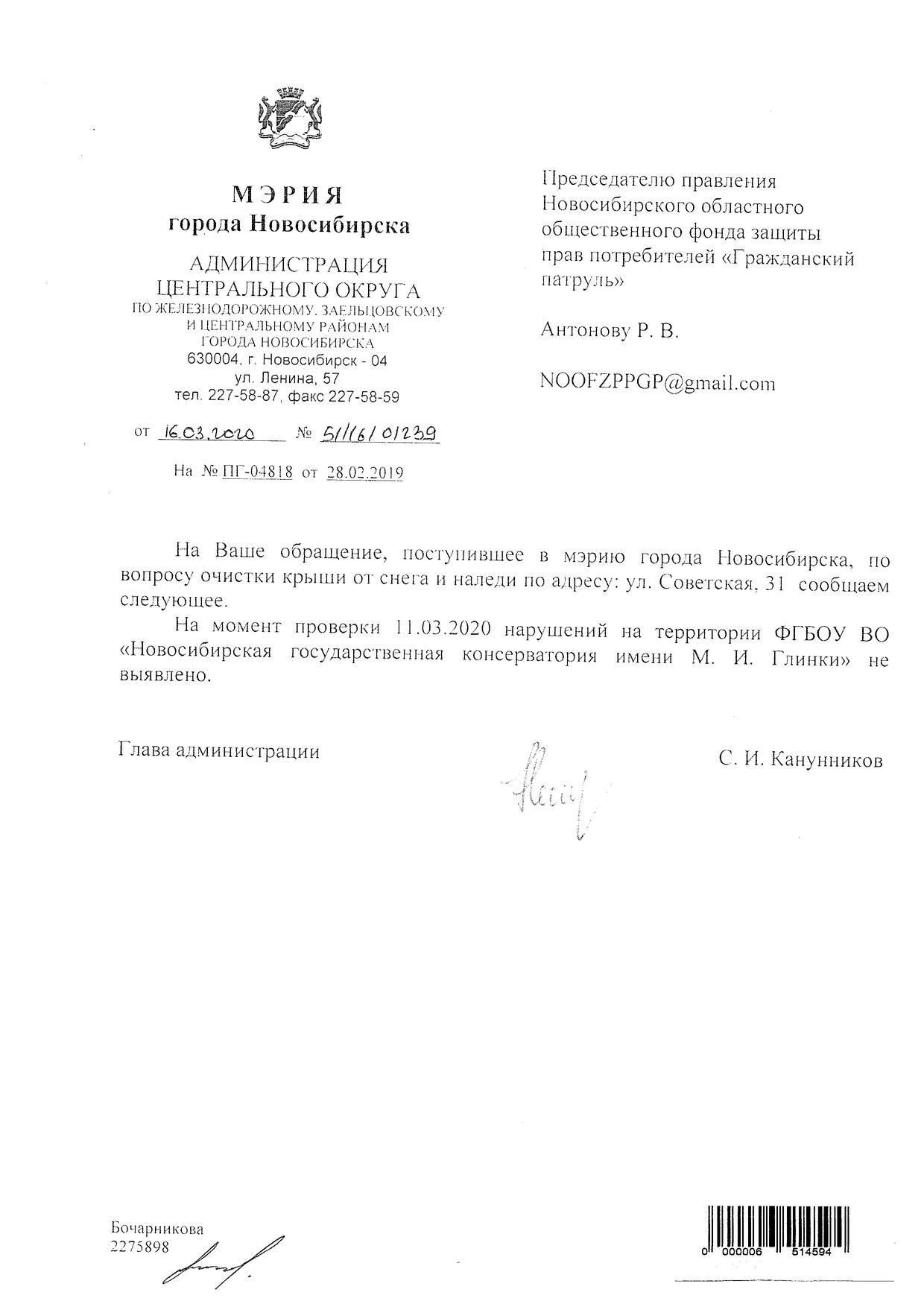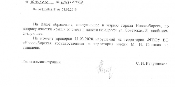 Номер жалобы:64220 Тип жалобы:Прочее Название объекта: Регион:Новосибирская область Город:Новосибирск Адрес:Советская улица, 31 Описание жалобы:Огромные сосульки на Консерватории имени Глинки Статус: