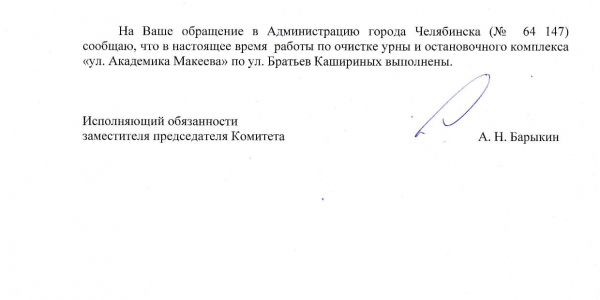 Номер жалобы:64147 Тип жалобы:Прочее Название объекта: Регион:Челябинская область Город:Челябинск Адрес:улица Братьев Кашириных Описание жалобы:Остановка "Ак.Макеева" (в сторону С/З). Отсутствует должная уборка (периодичность) остановочного комплекса. Мусорная урна с большим постоянством переполнена. Прошу принять меры. Статус: