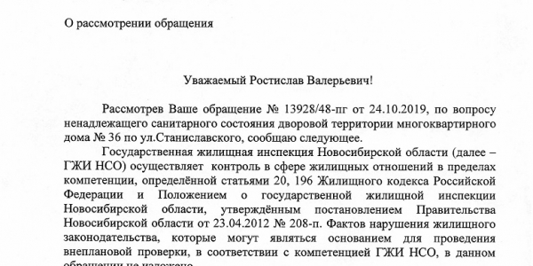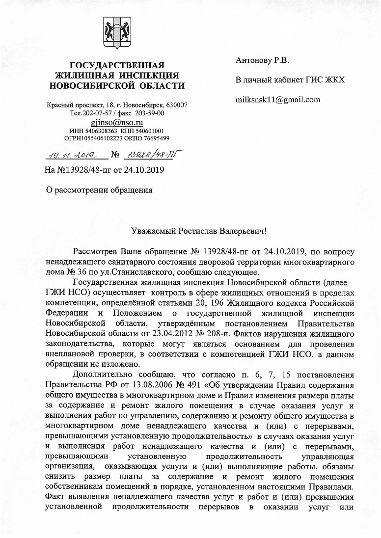 Номер жалобы:61168 Тип жалобы:Иные проблемы ЖКХ Название объекта: Регион:Новосибирская область Город:Новосибирск Адрес:улица Станиславского, 36 Описание жалобы:Дворник не убирает листву. Старый совсем видимо, нет сил. Субботник не проводили. Территория дома станиславского 36. Статус: