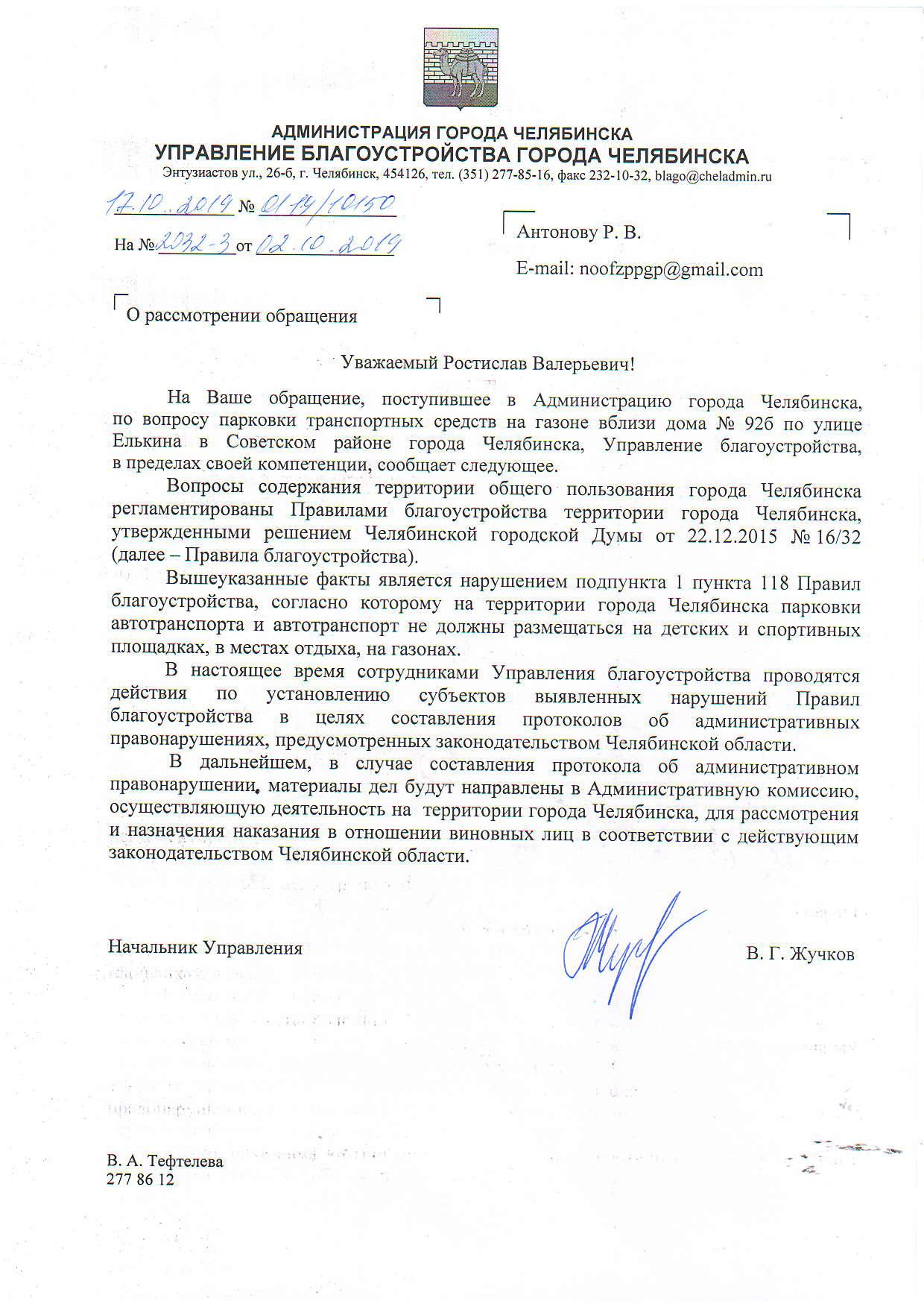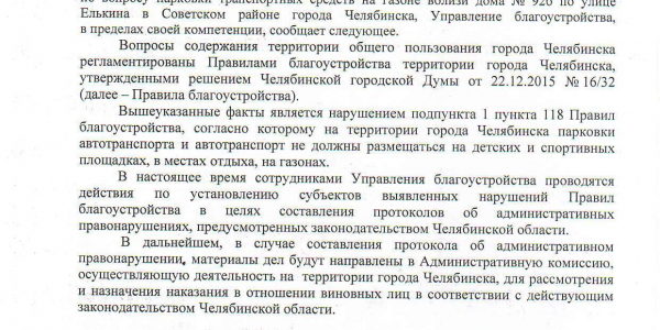 Номер жалобы:60570 Тип жалобы:Иные проблемы ЖКХ Название объекта: Регион:обл. Челябинская Город:Челябинск Адрес:улица Елькина, 92Б Описание жалобы:ПДД Парковка на газоне Статус: