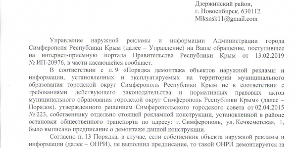 1. Прошу проверить законность размещения лайтбокса у остановки, который закрывает расписание общественного транспорта на остановке ТЦ Крым, либо перенести расписание.