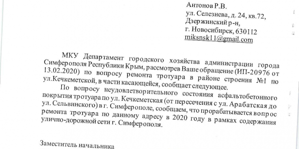 Номер жалобы:63680 Тип жалобы:Прочее Название объекта: Регион:Республика Крым Город:Симферополь Адрес:Кечкеметская улица, 1 Описание жалобы:Администрация Симферополя: