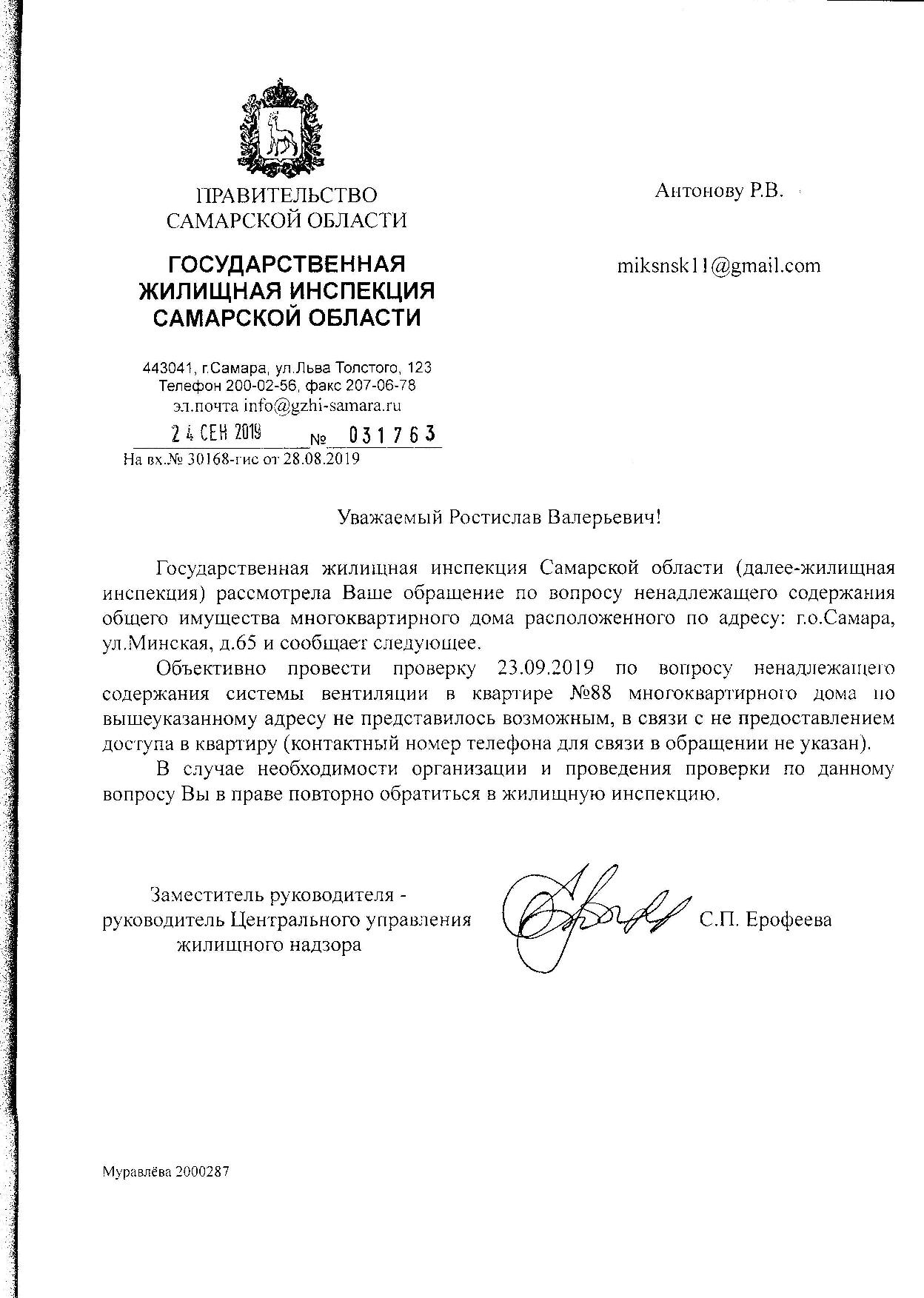 Номер жалобы:58899 Тип жалобы:Иные проблемы ЖКХ Название объекта: Регион:Самарская область Город:Самара Адрес:Минская улица, 65 Описание жалобы:Не работает вытяжка в доме, не чистят вентиляционные каналы. Второй подъезд, 5 этаж, квартира 88 Статус: Вложенные файлы: