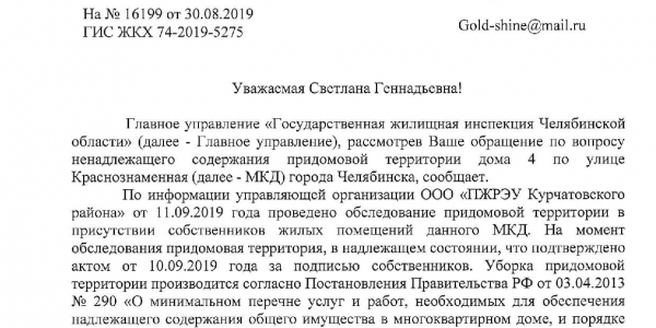 Номер жалобы:59135 Тип жалобы:Иные проблемы ЖКХ Название объекта: Регион:Челябинская область Город:Челябинск Адрес:Краснознамённая улица, 4 Описание жалобы:Во дворе отсутствует детская площадка, двор в ненадлежащем состоянии Статус: