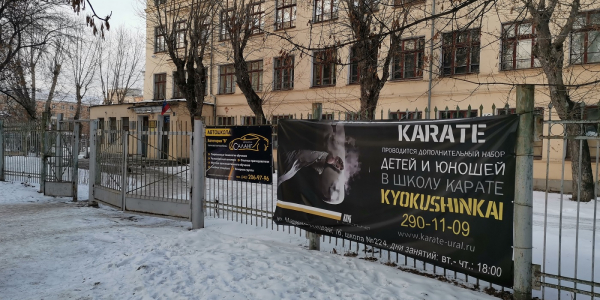 Номер жалобы:62914 Тип жалобы:Прочее Название объекта:МУГИСО Регион:Свердловская область Город:Екатеринбург Адрес:Машиностроителей, 16 Описание жалобы:Незаконные баннеры "Карате" и "Автошкола" на ограде центра образования №224 Статус: