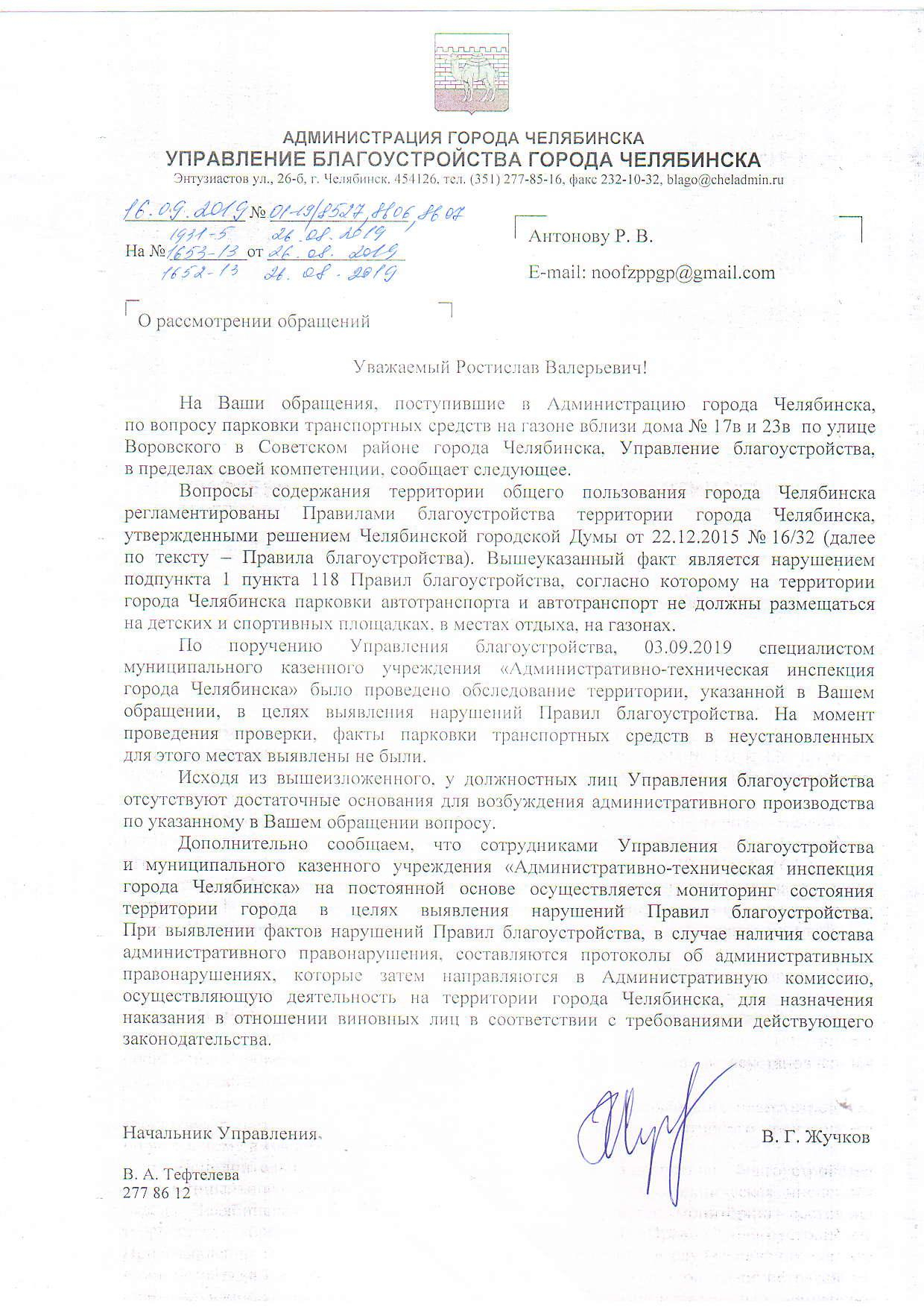 Номер жалобы:58592 Тип жалобы:Иные проблемы ЖКХ Название объекта: Регион:Челябинская обл. Город:Челябинск Адрес:улица Воровского, 23В Описание жалобы:Парковка на газоне Статус: