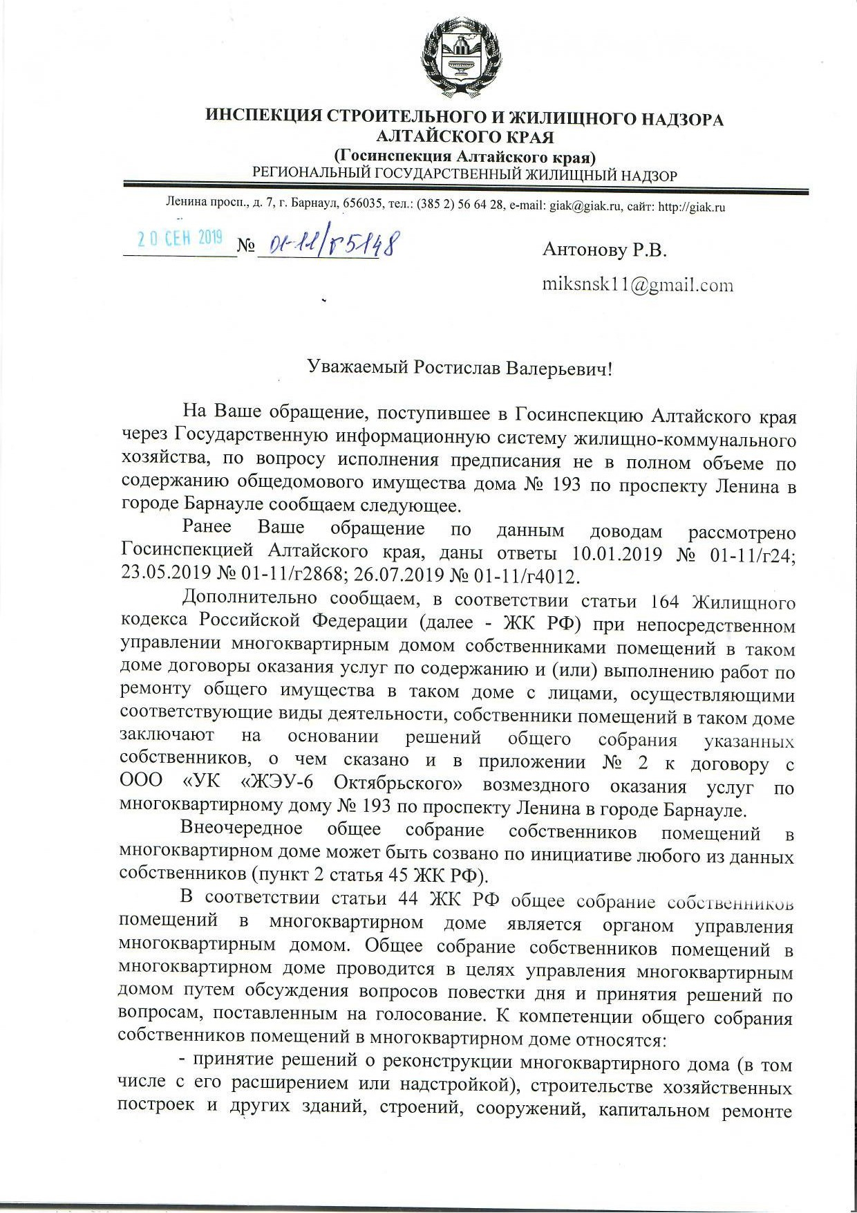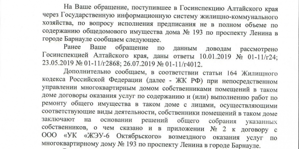 госинспекция сняла предписание с УК ЖЭУ-6 оКТЯБРЬСКОГО, с чем мы категорически не согласны. Статус: