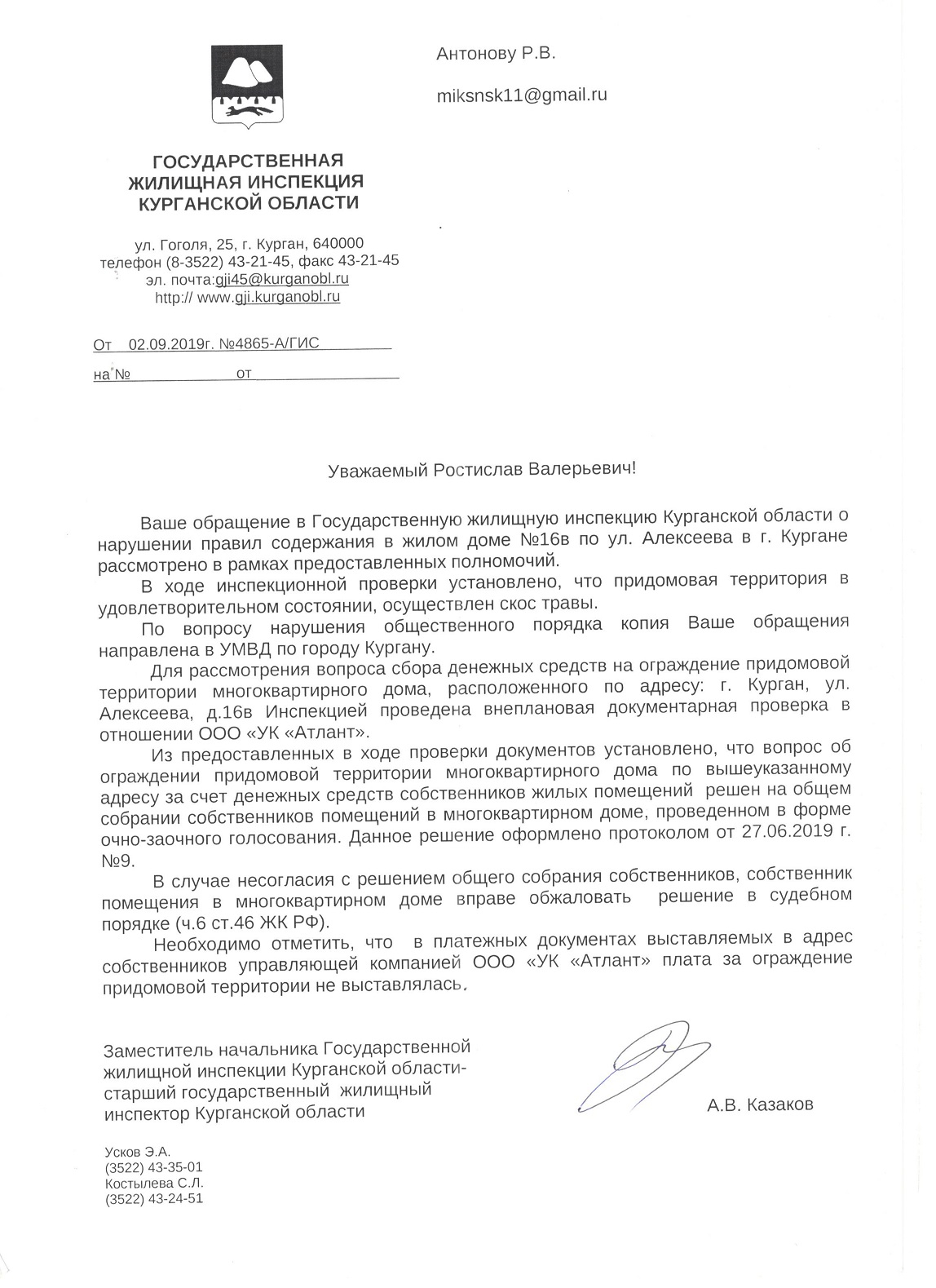 Номер жалобы:58194 Тип жалобы:Иные проблемы ЖКХ Название объекта: Регион:Курганская область Город:Курган Адрес:улица Алексеева, 16В Описание жалобы:Управляющая компания "Атлант". Не косят траву на территории дома по адресу город Курган ул.Алексеева 16 в.Игнорируют Статус: