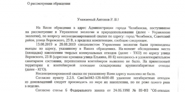 Номер жалобы:58240 Тип жалобы:Иные проблемы ЖКХ Название объекта: Регион:Челябинская область Город:Челябинск Адрес:улица Воровского, 23В Описание жалобы:Несанкционированная свалка мусора рядом с контейнерной площадкой. Статус: