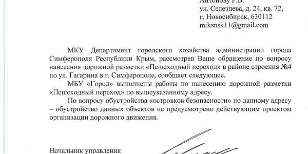 Описание жалобы: В прокуратуру. Муниципальное казенное учреждение Департамент капитального строительства Администрации города Симферополя Республики Крым в нарушение п.2.4 «Методических рекомендаций по содержанию мостовых сооружений на автомобильных дорогах»