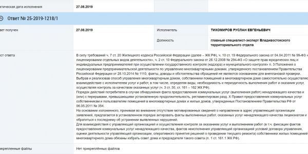 Номер жалобы:57923 Тип жалобы:Иные проблемы ЖКХ Название объекта: Регион:Приморский край Город:Владивосток Адрес:Владивосток, улица Борисенко, 104А Описание жалобы:Заверенная урна. Статус: