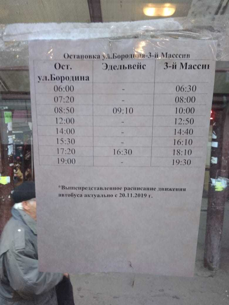 Бородино - третий массив автобу гос номер номер с цифрами 020, 19 августа в 07:40 сломался и приехал заменный в 08:30. Каждый вечер опаздывает на 20-30 минут, опоздания вечером оправдывает пробками, хотя вечером пробок нет. на все замечания водитель говорит звоните начальству, начальник трубку не берет. На линии работает один старый автобус который регулярно ломается, летом был другой перевозчик и на маршруте было два автобуса,