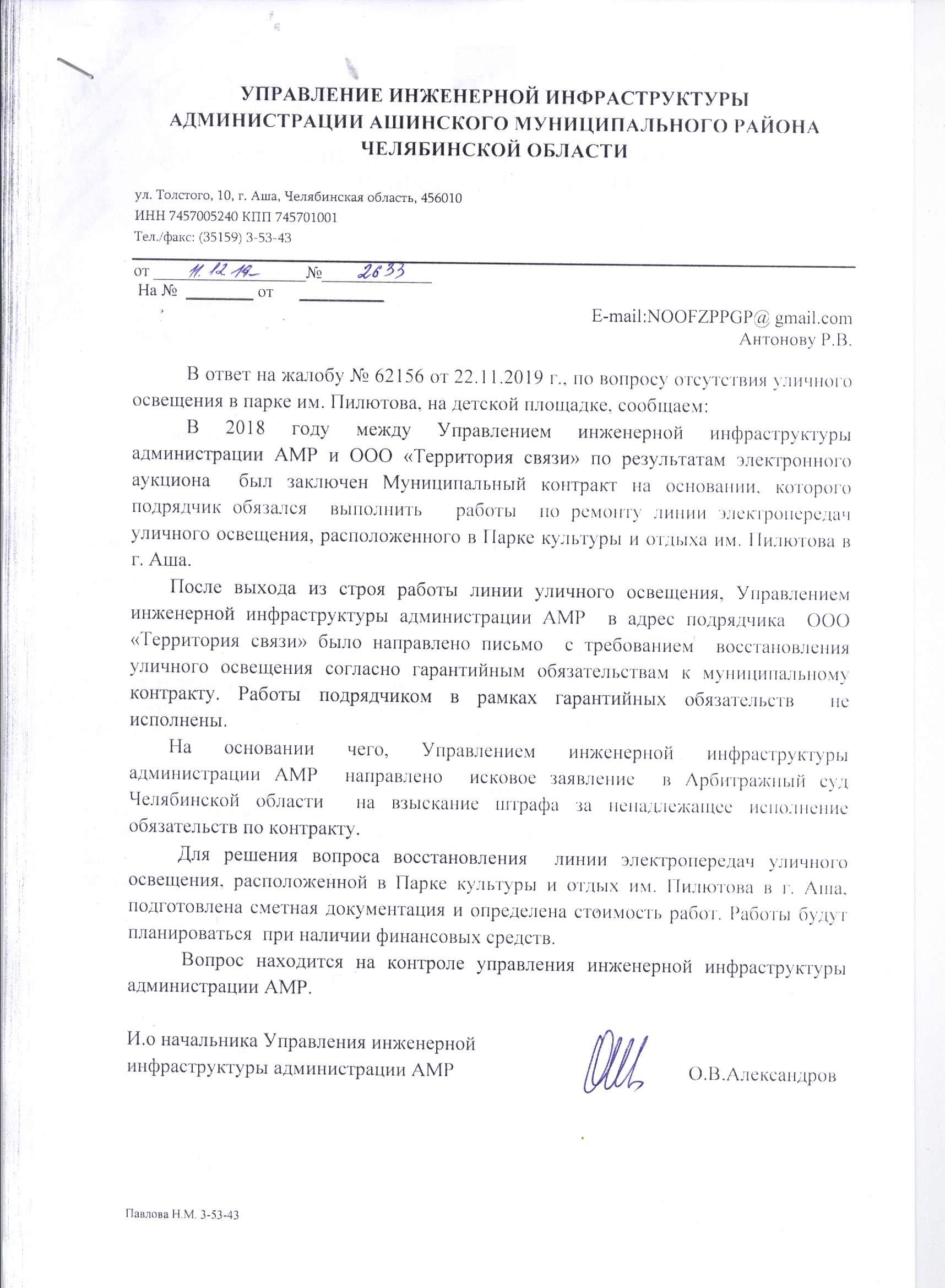 Номер жалобы:62156 Тип жалобы:Прочее Название объекта:Администрация г.Аша Регион:Челябинская область Город:Аша Адрес:(54.989834, 57.274219) Описание жалобы:Парк им. П.А.Пилютова.