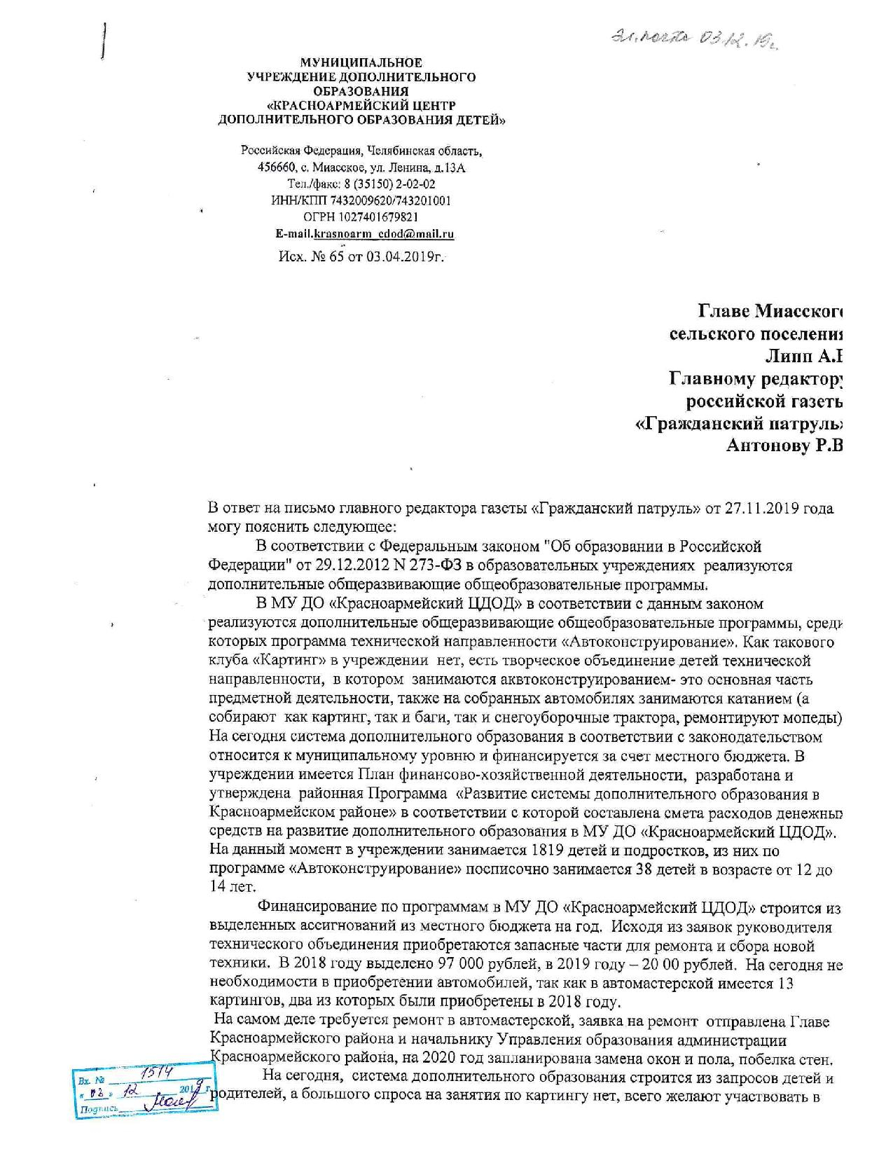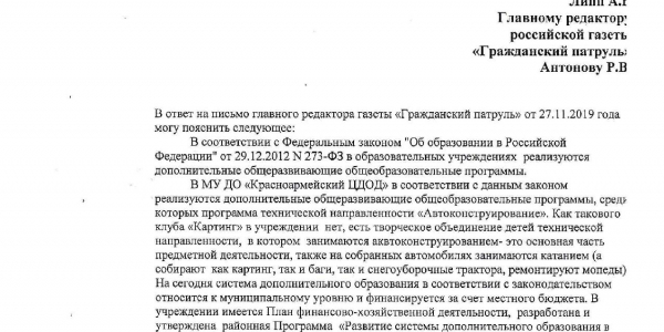 Номер жалобы:62114 Тип жалобы:Прочее Название объекта: Регион:Челябинская область Город:село Миасское Адрес:улица Ленина, 13А Описание жалобы:В Красноармейском районе с. Миасское (ул. Ленина 13а) находится Картинг клуб, один из самых старых и востребованных кружков для детей нашего села, созданный ровно 50 лет назад. Дата круглая, а состояние его оставляет желать лучшего. Данному клубу для развития нужна РЕГУЛЯРНАЯ финансовая помощь Министерства образования района или области, Администрации Красноармейского района и с. Миасского.