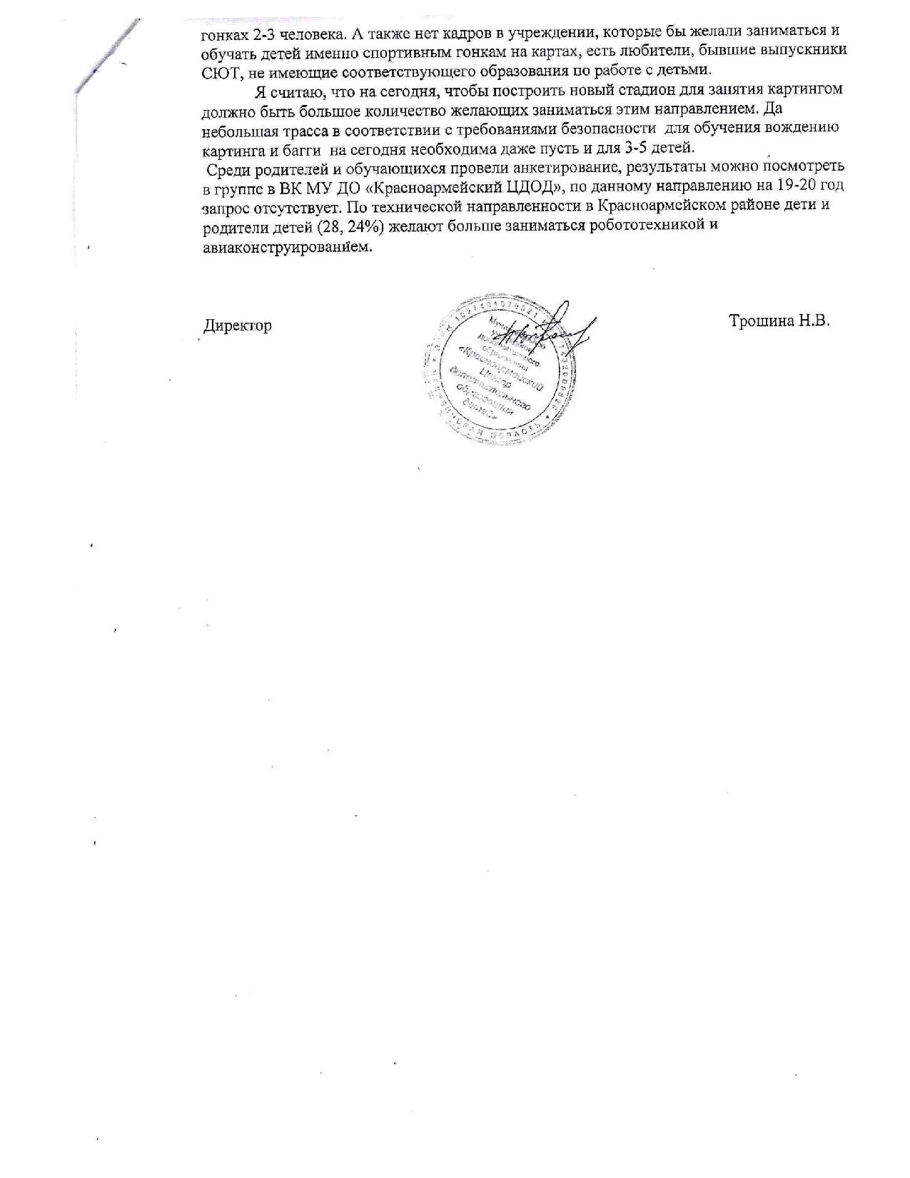 Чтобы увеличить результаты клуба, необходима нормальная оснащённая тренировочная площадка для картинга, рядом со зданием, новые машины. Земельный участок имеется, рядом с 1 школой, но на ней постоянно что-либо планируют построить уже долгое время, а исполненного проекта ни одного так и нет. Земля пустует! А рядом есть клуб, нуждающийся в небольшой тренировочной площадке.
