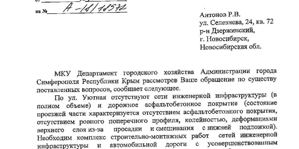 1. нет асфальта на дороге, по- поводу отсутствия асфальтного покрытия! На нашем подъёме -5 домовладений,