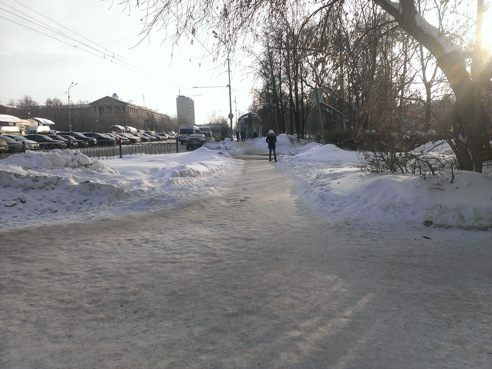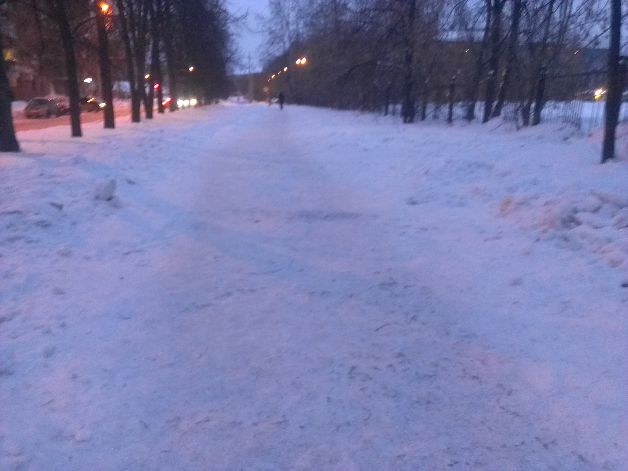 Номер жалобы:14020 Тип жалобы:Качество уборки снега на тротуарах Название объекта:Администрация Екатеринбурга Регион:Свердловская область Город:Екатеринбург Адрес:улица Луначарского, 21 Описание жалобы:Тротуар вдоль нечётной стороны Луначарского на участке от дома 17 до улицы Короленко очищен от снега неудовлетворительно. Уборка произведена не по всей ширине тротуара, на очищенной части тротуара оставлен слой уплотнённого снега, который в настоящее время укатан до состояния льда. Статус: