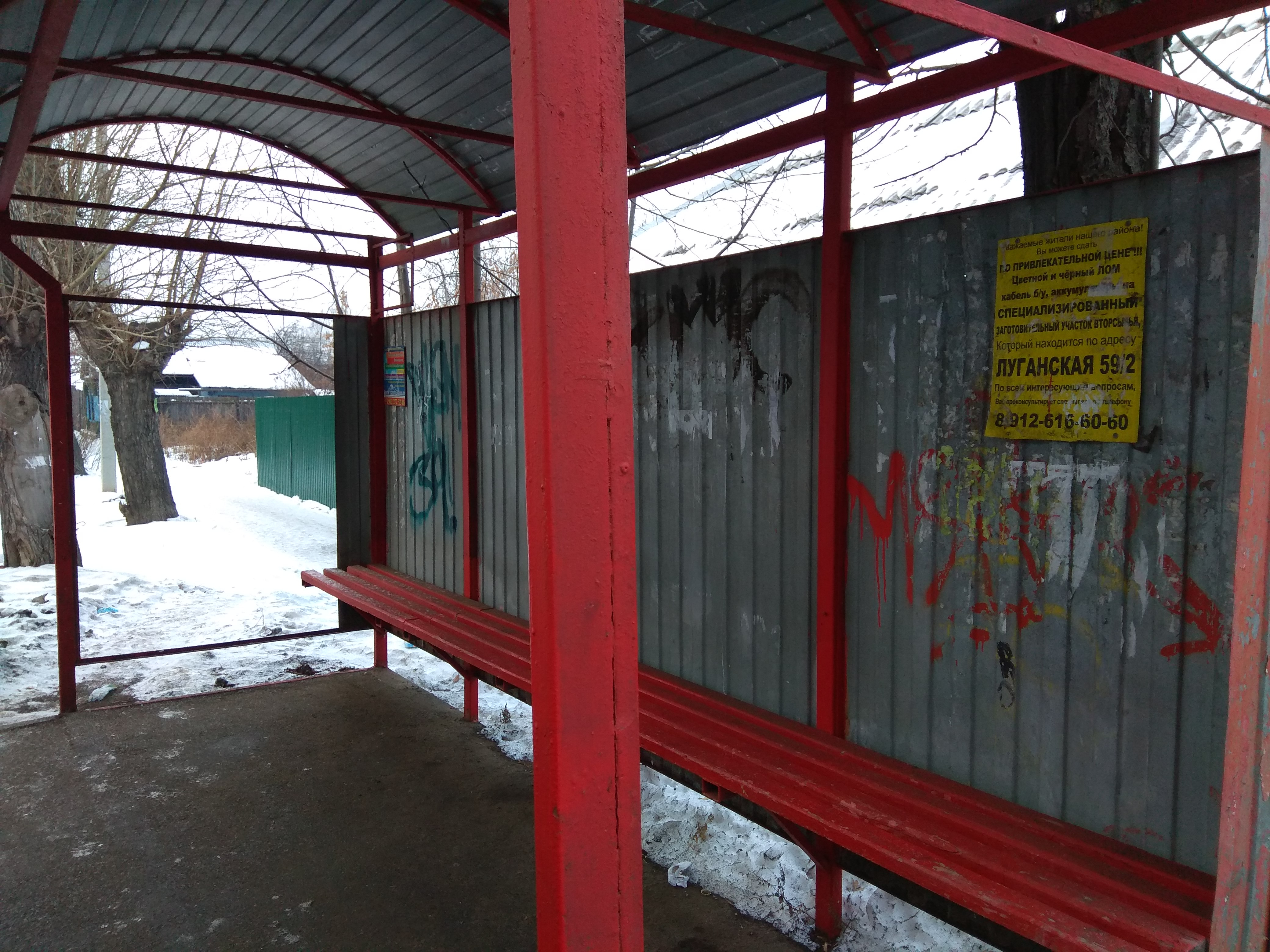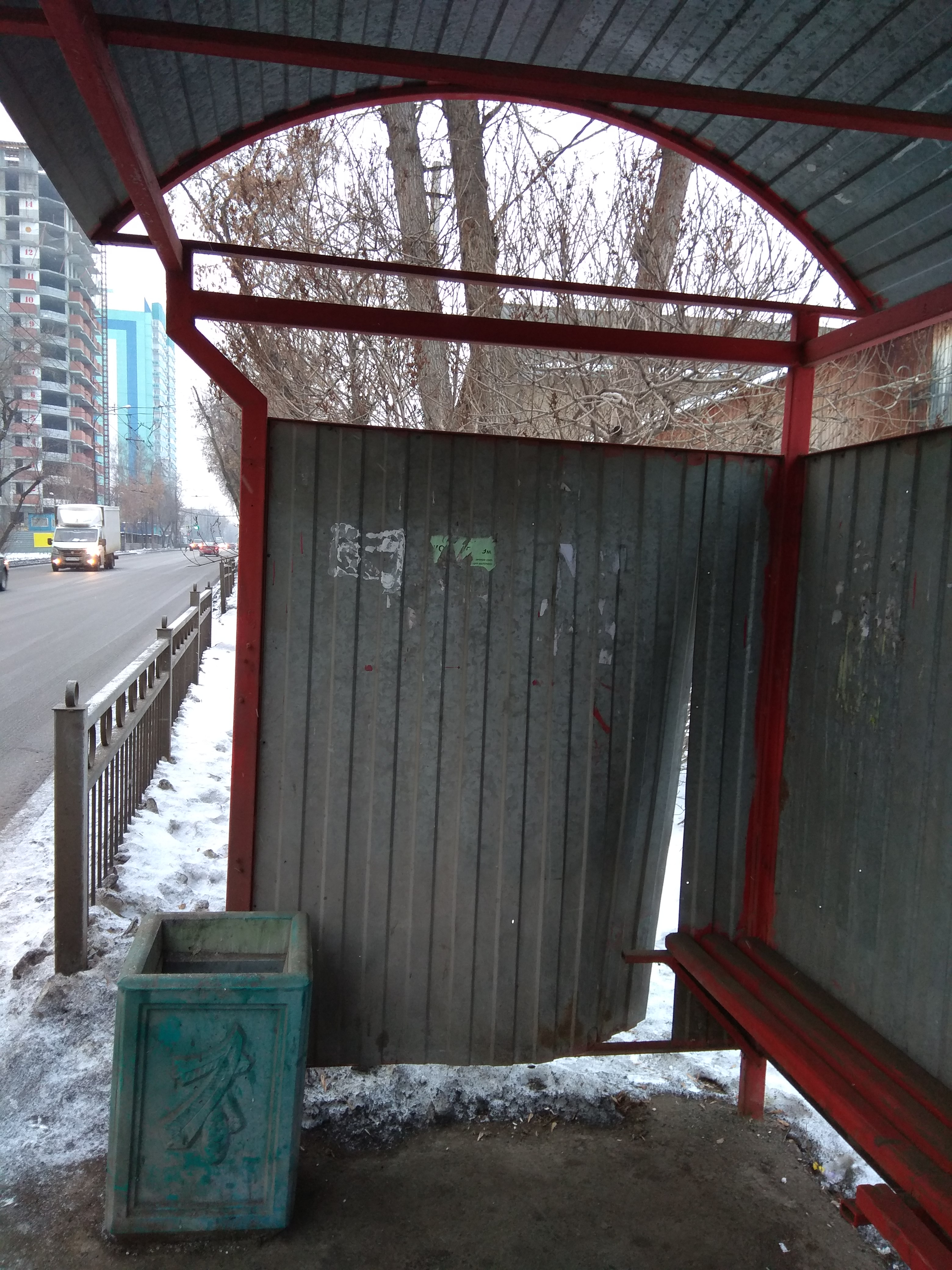 Номер жалобы:39527 Тип жалобы:Ненадлежащее содержание малых архитектурных форм Название объекта:Администрация Екатеринбурга Регион:Свердловская область Город:Екатеринбург Адрес:Самолётная улица, 45 Описание жалобы:Внутри навеса на остановке «Кварцевая» в сторону остановки «Павлодарская» размещены доски объявлений, на колоннах расклеена реклама. Облицовка колонн и, крыши измята, частично удалена, нет части стены. Отсутствуют несколько палок в сидении. Статус: