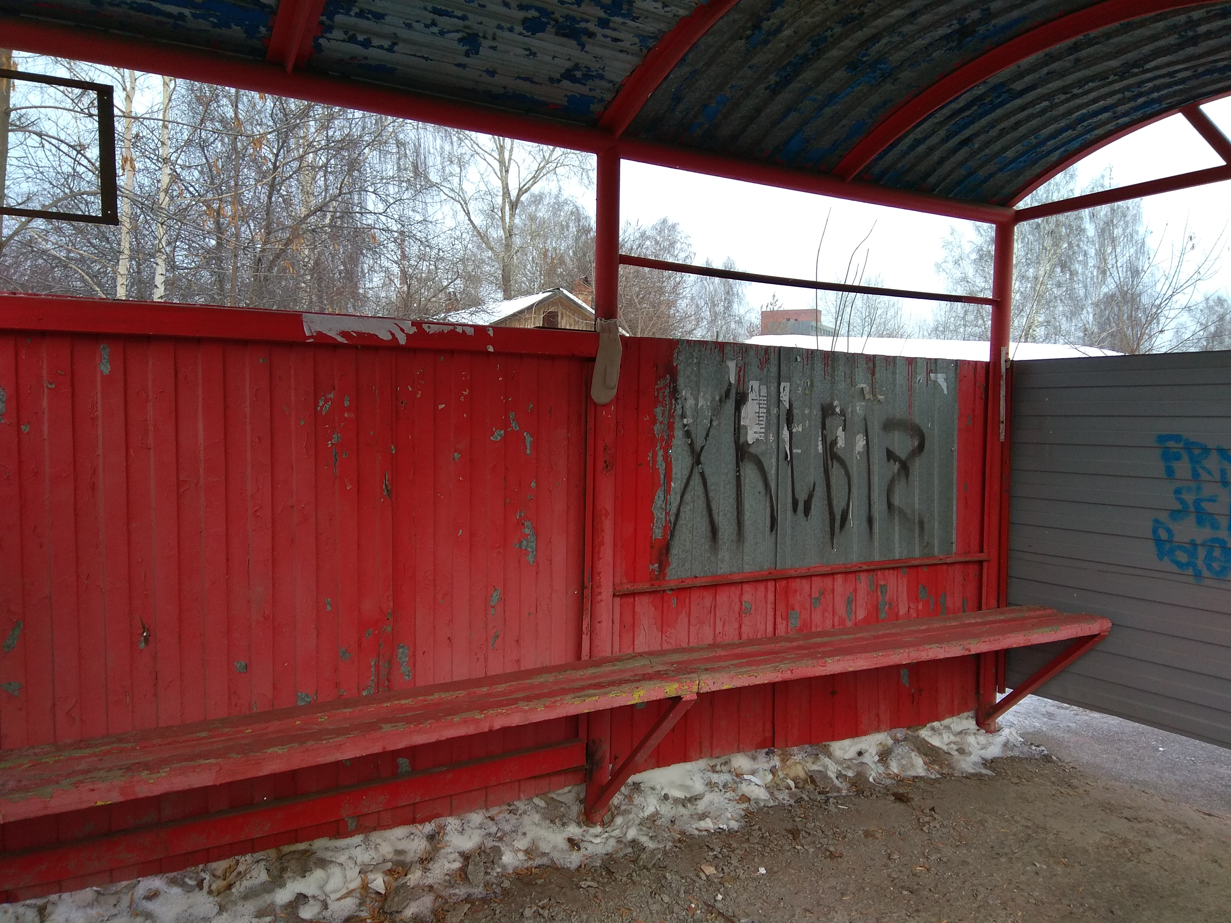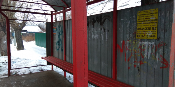 Номер жалобы:39500 Тип жалобы:Ненадлежащее содержание малых архитектурных форм Название объекта:Администрация Екатеринбурга Регион:Свердловская область Город:Екатеринбург Адрес:Самолётная улица, 44 Описание жалобы:На навесе на остановке «Межевая» в сторону остановки «Павлодарская» нанесены граффити и расклеена реклама. Некоторые листы стен навеса не закреплены. Сломана одна доска скамейки. Статус: