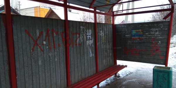 Номер жалобы:39525 Тип жалобы:Ненадлежащее содержание малых архитектурных форм Название объекта:Администрация Екатеринбурга Регион:Свердловская область Город:Екатеринбург Адрес:Самолётная улица, 80 Описание жалобы:На навесе на остановке «Павлодарская» в сторону остановки «Кварцевая» нанесены графити и расклеена реклама. Часть щитов стен отсутствуют.