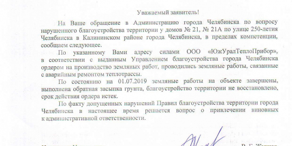 Номер жалобы:56403 Тип жалобы:Иные проблемы ЖКХ Название объекта: Регион:Челябинская область Город:Челябинск Адрес:улица 250-летия Челябинска, 21 Описание жалобы:Во дворе 250 летия Челябинску 21а, 21 была дорога по которой ходили люди до остановок, магазинов. Осенью 19г копали до труб и весь асфальт развалили. Обратно в надлежащее состояние не вернули. Просим обратно вернуть асфальт. Статус: