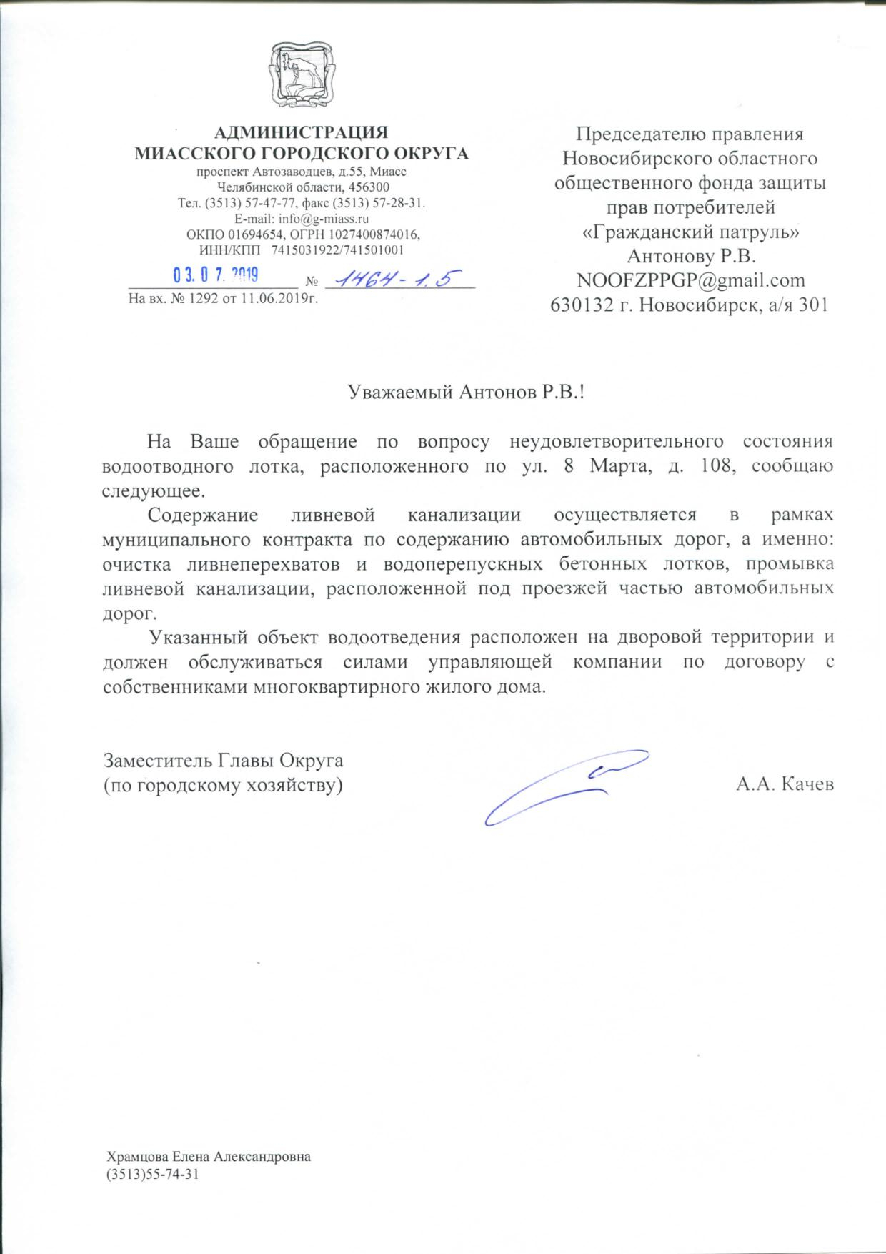 Номер жалобы:56028 Тип жалобы:Иные проблемы ЖКХ Название объекта: Регион:Челябинская область Город:Миасс Адрес:улица 8 Марта, 108 Описание жалобы:Забит ливнесток Статус: