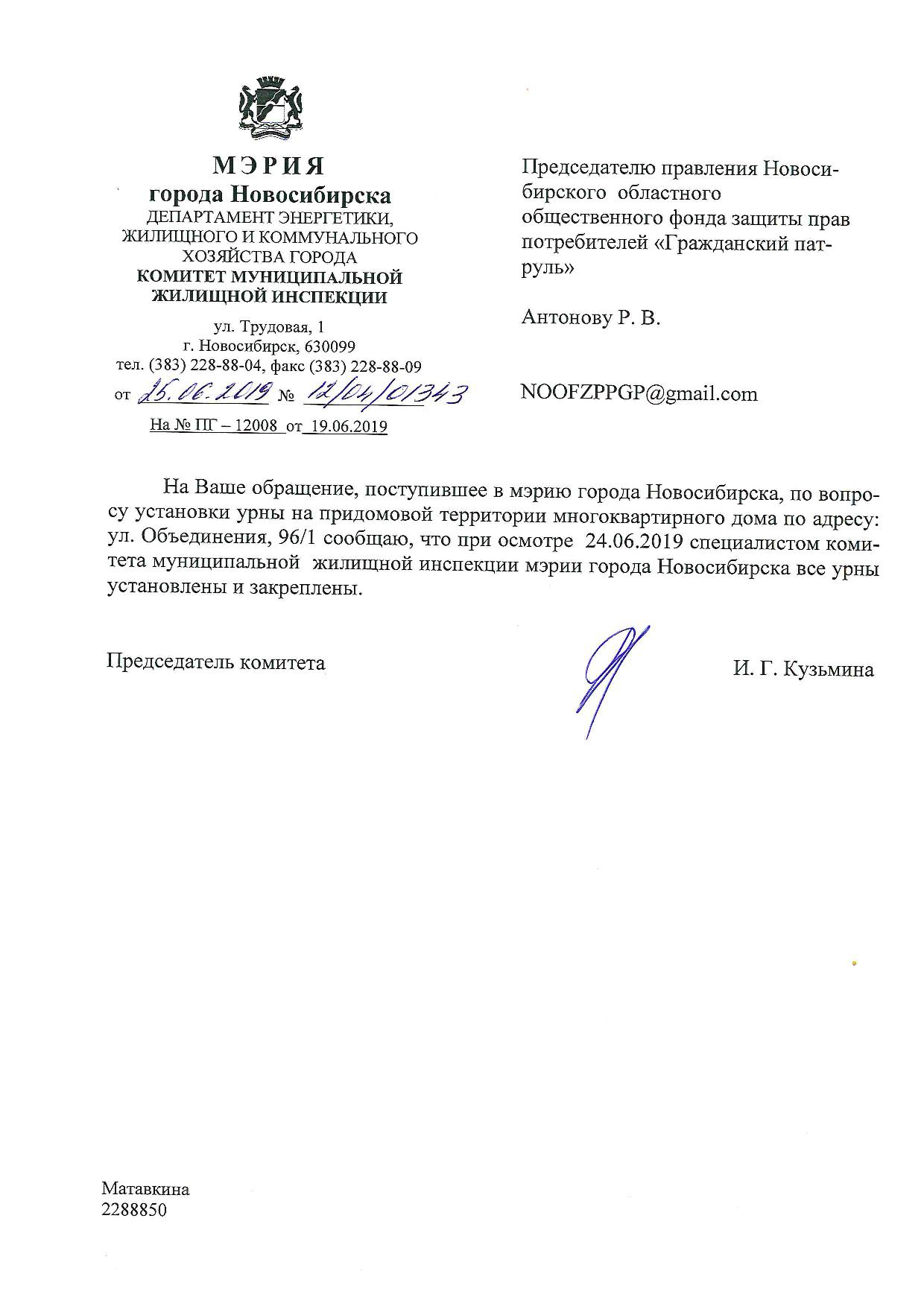 Номер жалобы:56086 Тип жалобы:Иные проблемы ЖКХ Название объекта: Регион:Новосибирская область Город:Новосибирск Адрес:улица Объединения, 96/1 Описание жалобы:Урна не зафиксирована Статус:
