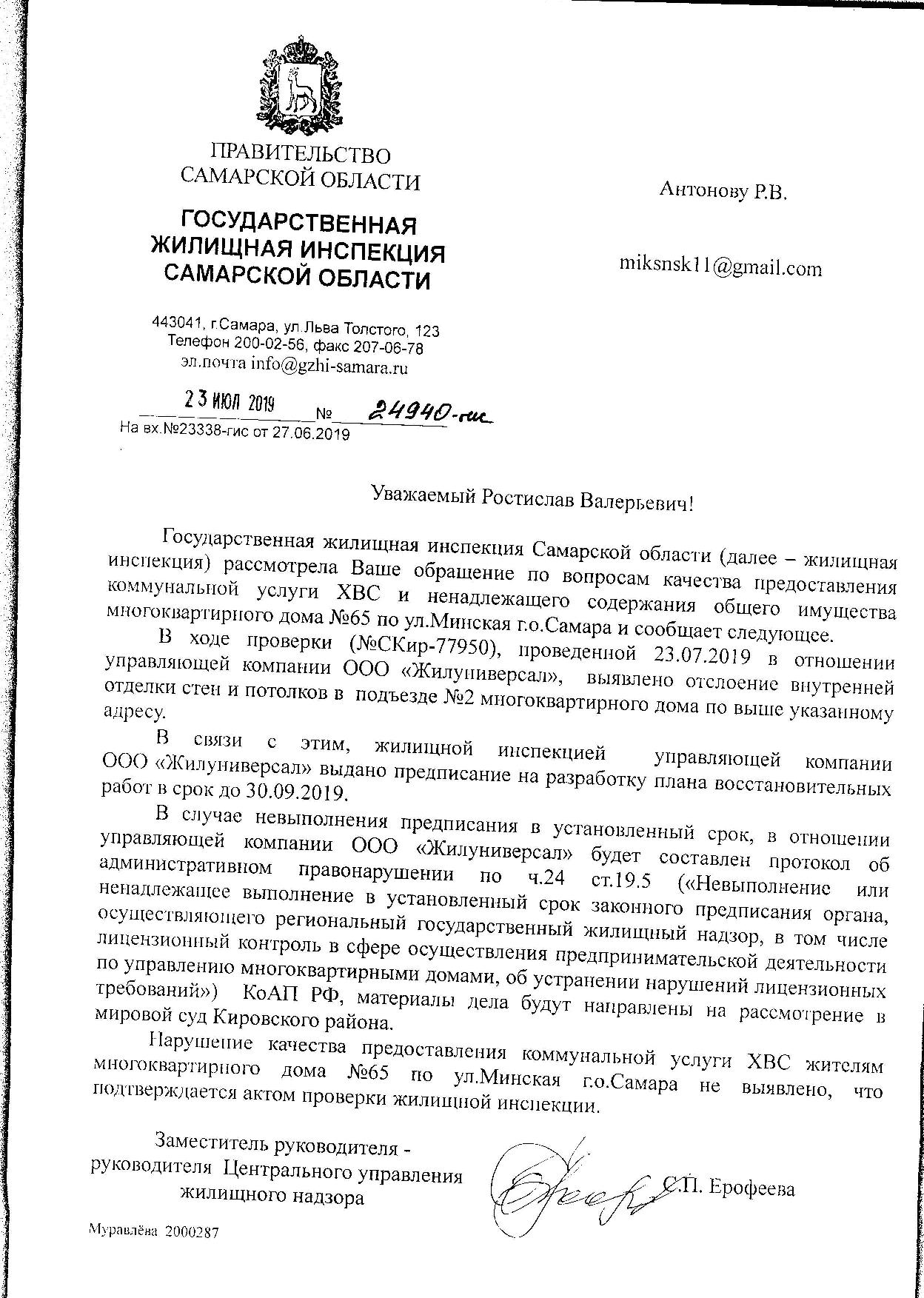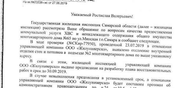 Номер жалобы:56114 Тип жалобы:Иные проблемы ЖКХ Название объекта: Регион:Самарская область Город:Самара Адрес:Минская улица, 65 Описание жалобы:Не делают ремонт в подъезде №2 Статус: