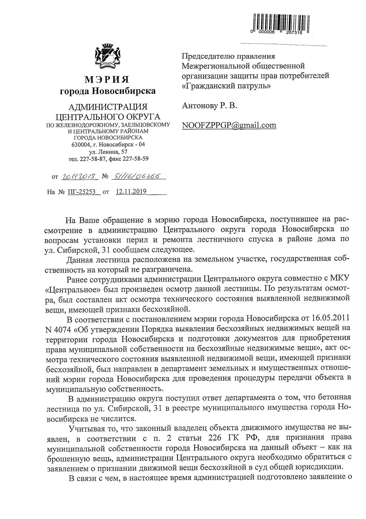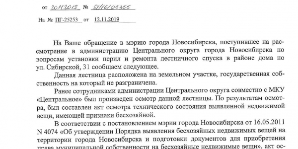 Номер жалобы:61914 Тип жалобы:Прочее Название объекта: Регион:Новосибирская область Город:Новосибирск Адрес:Сибирская улица, 31 Описание жалобы:Опасная лестница. Необходимо привести в надлежащее состояние.. Есть пострадавшие: гайдышев Сергей Петрович Статус: