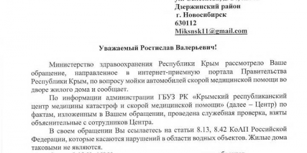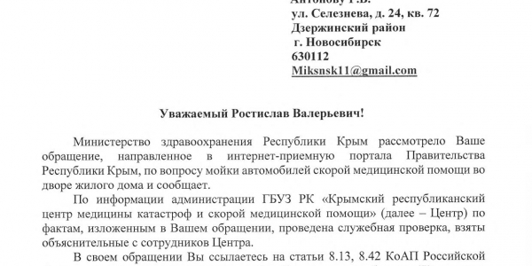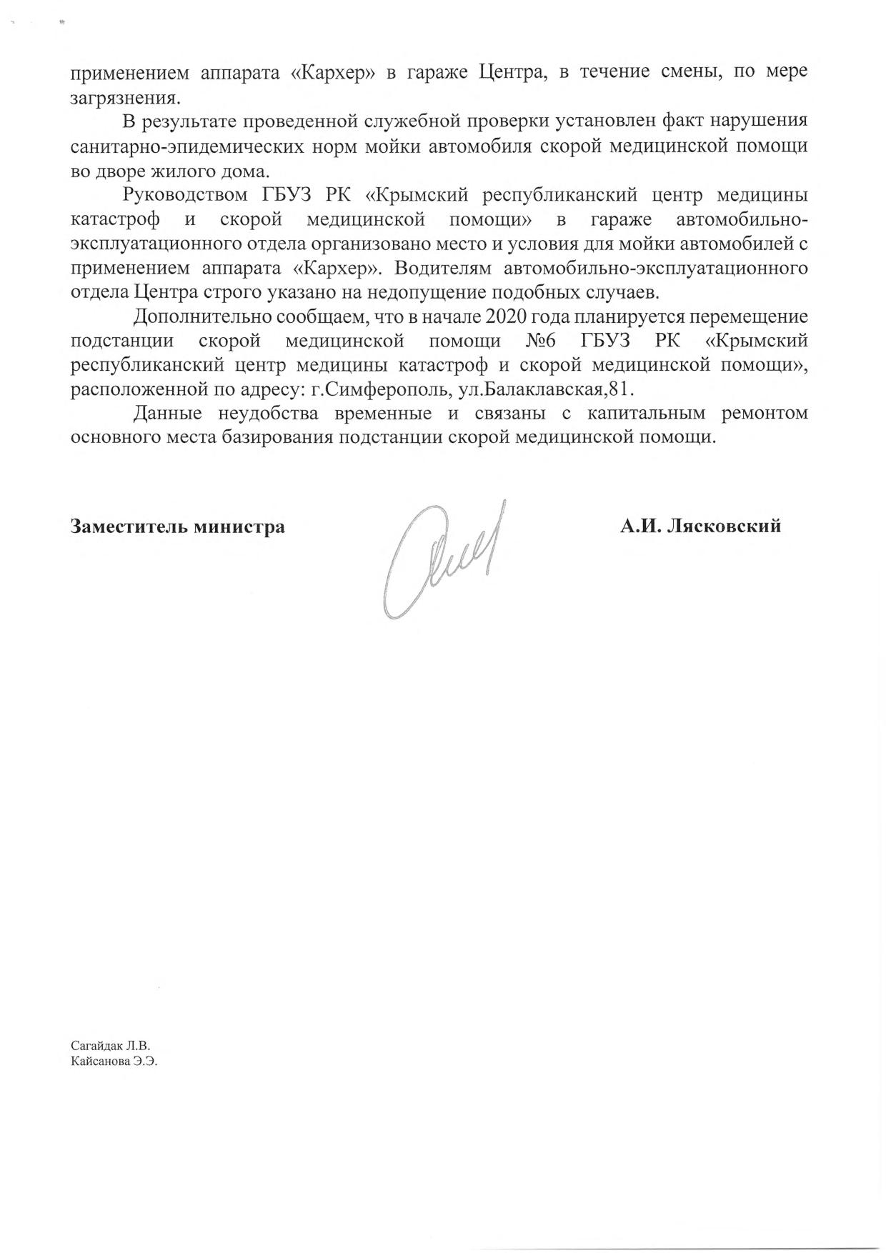 Дополнительно прошу сообщить почему скорая помощь размещается в жилом доме по Балаклавской 81, по заявлениям чиновников это был временный вариант размещения, что с постоянным пунктом скорой помощи, почему весь двор заставлен машинами скорой, прошу назвать сроки переезда Статус: