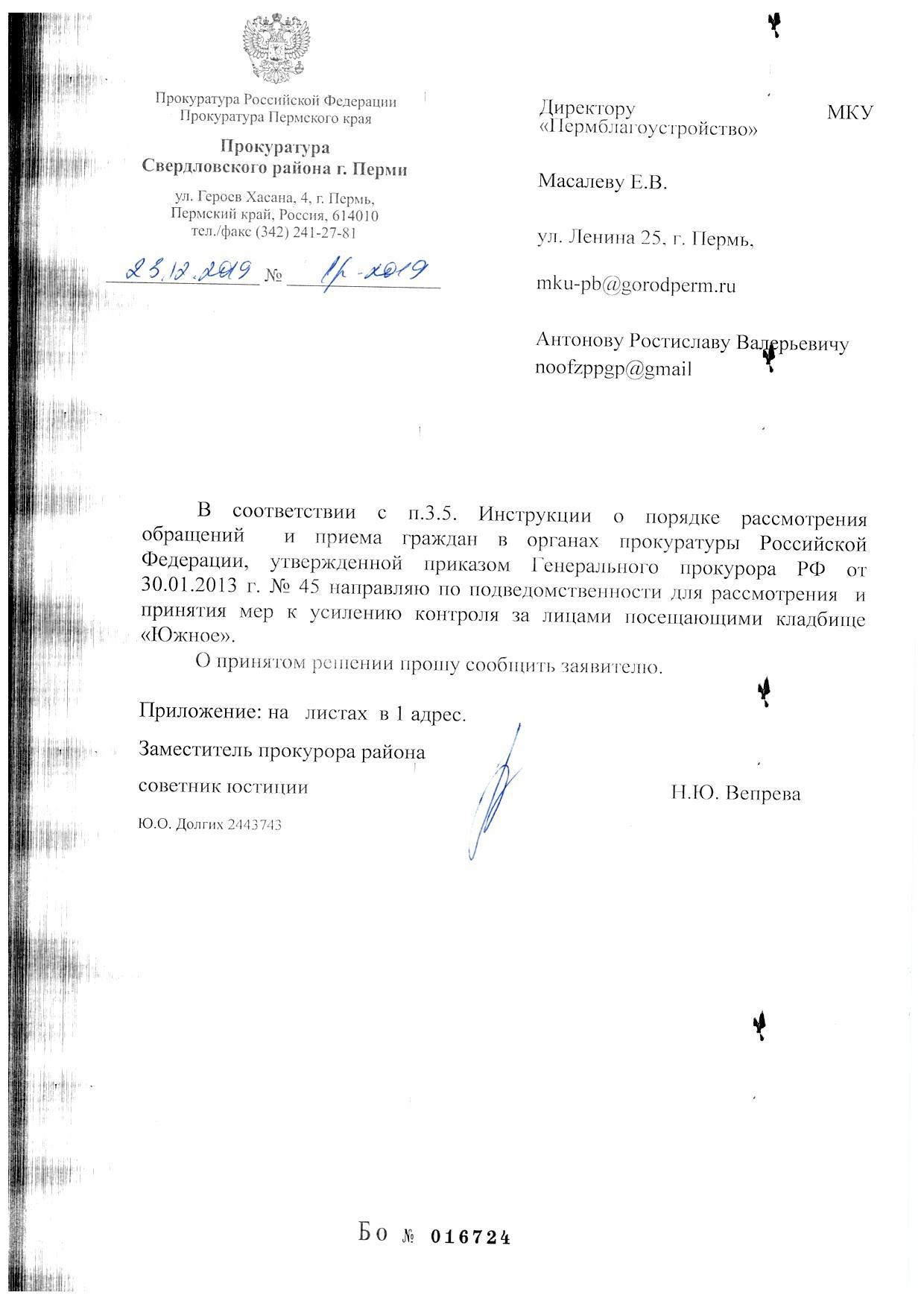 614017, Пермский край, город Пермь, улица Макаренко, дом 12, квартира 105» ежедневно выгуливает собак на южном кладбище,о чем сам,лично, рассказывает в данном видео по ссылке - https://vk.com/video-60528801_456239366 в данном видео,видно,как собаки испоражняются на могилы,и копают их. Нужно провести проверку данного лица и привлечь к ответственности. Статус: