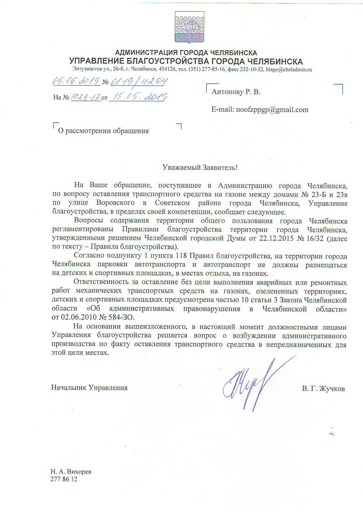Номер жалобы:54216 Тип жалобы:Иные проблемы ЖКХ Название объекта: Регион:Челябинская область Город:Челябинск Адрес:Воровского, 23Б Описание жалобы:Парковка на газоне между Воровского 23Б и 23В Статус: