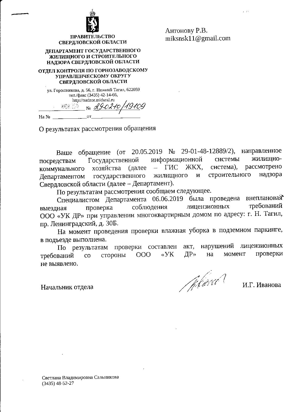 Номер жалобы:54507 Тип жалобы:Иные проблемы ЖКХ Название объекта: Регион:Свердловская область Город:Нижний Тагил Адрес:Ленинградский проспект, 30Б Описание жалобы:Ук Дзержинского района отказывается производить уборку в подземном паркинге. Ссылаясь на то что, 9 человек только заключили договора. Пожалуйста, пусть прибираются у тех 9ти с кем договора заключены. Статус: