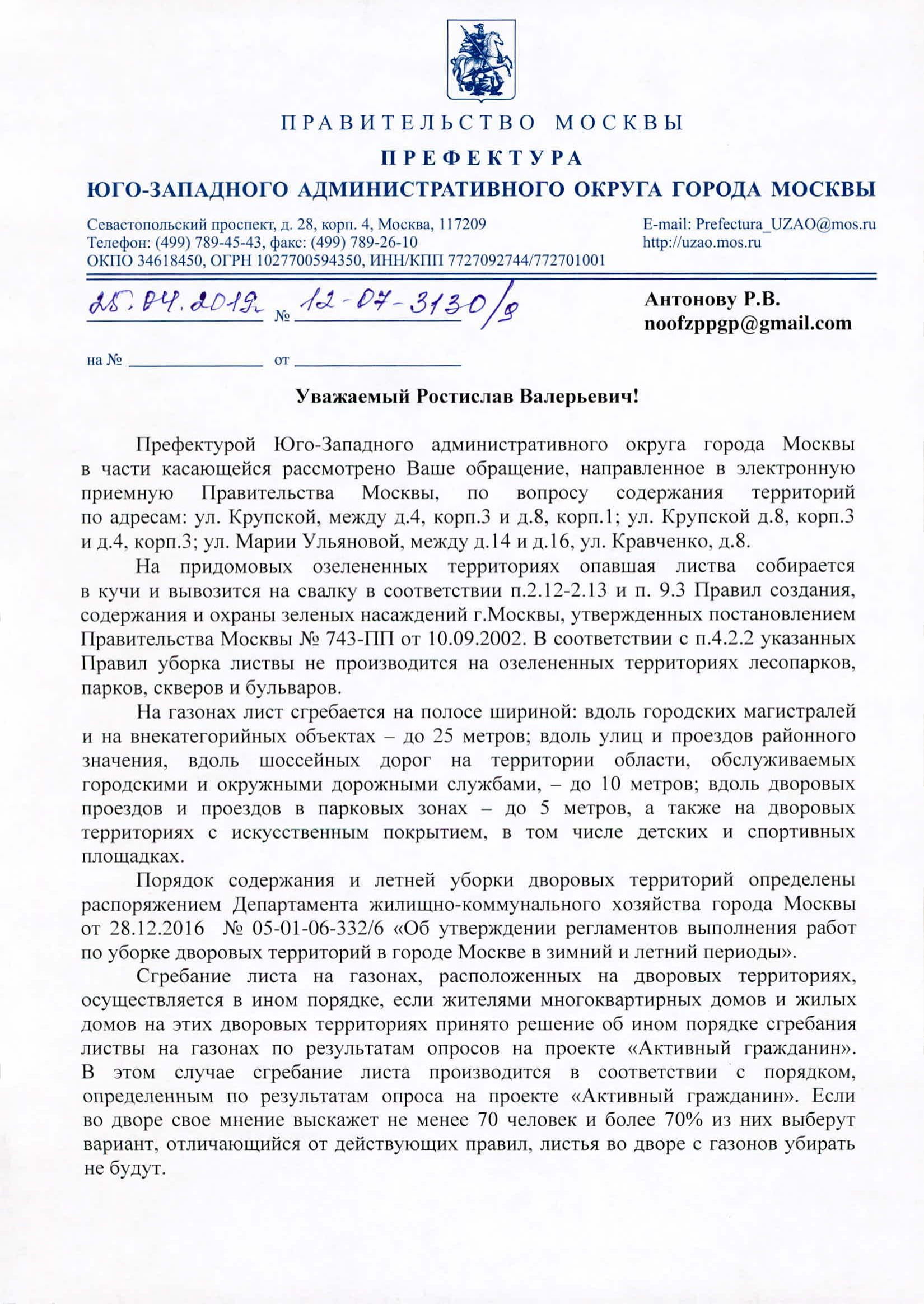 Номер жалобы:53236 Тип жалобы:Иные проблемы ЖКХ Название объекта: Регион:Москва Город:Москва Адрес:улица Крупской, 8к1 Описание жалобы:Во дворе между домами 8к1 и 4к3 по ул. Крупской убрали опавшую листву, однако до ближайшей городской магистрали явно больше 25 метров, до ближайшей районной улицы — более 10 метров, а двор непроезжий. Напомню, что уборка листвы приводит к обеднению и выветриванию почв, а также запрещена в неположенных местах. Просьба провести проверку по выявленному факту и в случае обнаружения нарушений принять меры в рамках компетенции.