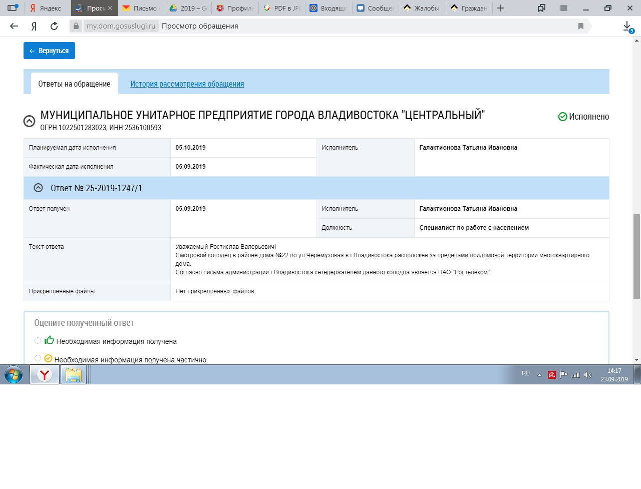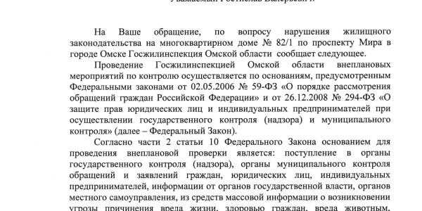 Номер жалобы:52827 Тип жалобы:Иные проблемы ЖКХ Название объекта:жкх Регион:Омская область Город:омск Адрес:пр.Мира 82/1 п1 Описание жалобы:писали жалобы чтоб провода эти убрали, которые нужные оставили но в специальной трубе дыры специально просверлили для данной трубы (вроде как ставиться обычная пластиковая труба ) как во многих домах чтобы аккуратно было, всем плевать , что делать с этими проводами ? Провода торчат интернет в основном , есть и электро провода оголенные Статус: