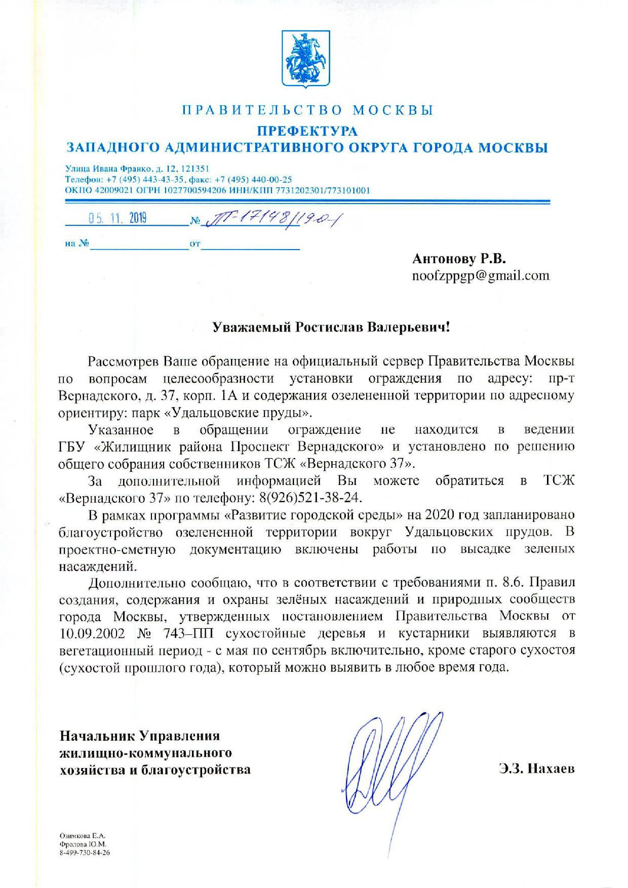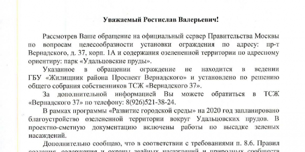Номер жалобы:60774 Тип жалобы:Прочее Название объекта: Регион:Москва Город:Москва Адрес:Удальцовские пруды Описание жалобы:Некоторые ели, высаженные в этом году на Удальцовских прудах, погибли или же близки к гибели. Первое фото с правого берега нижнего пруда. Второе сделано в роще зювыше прудов. Эти четыре дерева следует выкорчевать и произвести компенсационные посадки Статус: