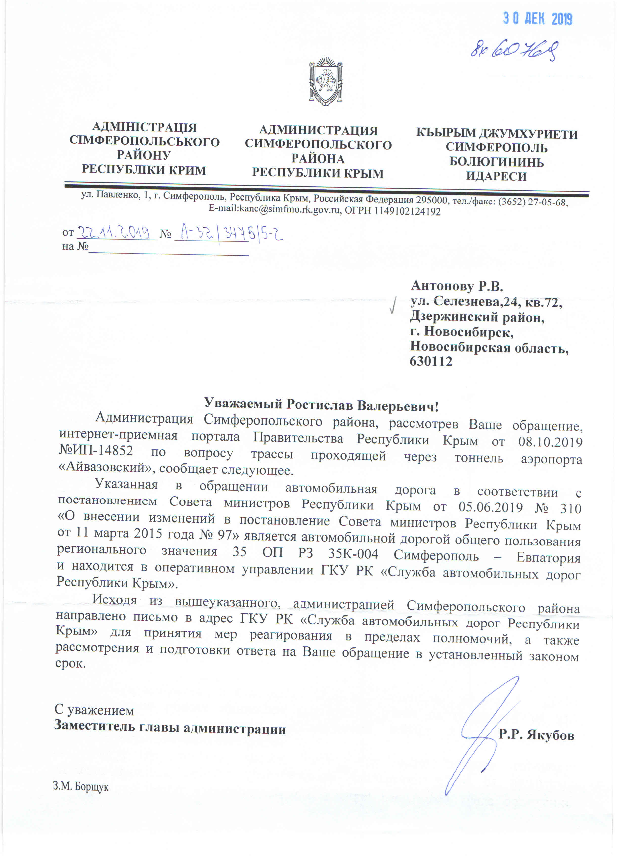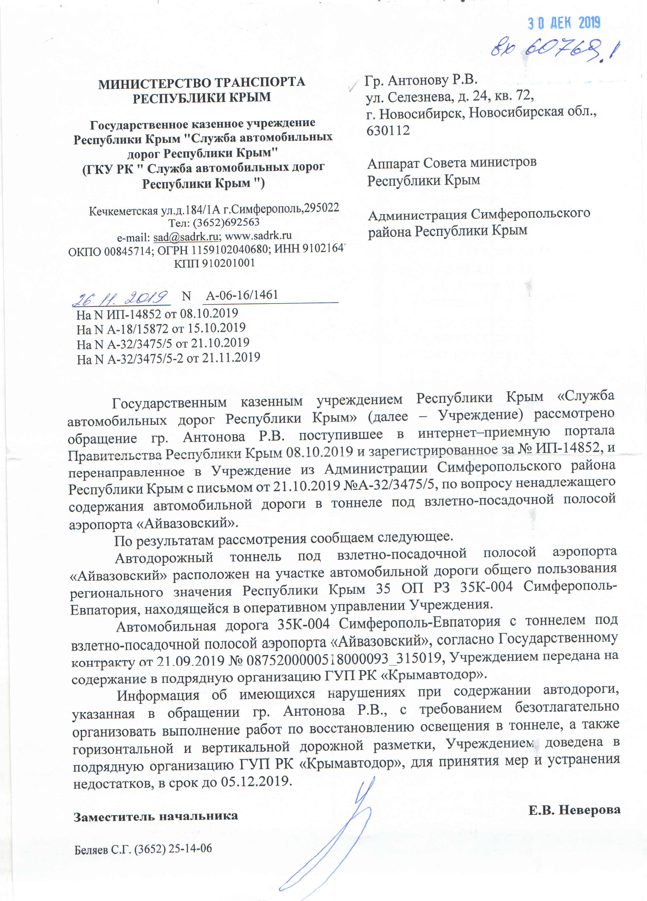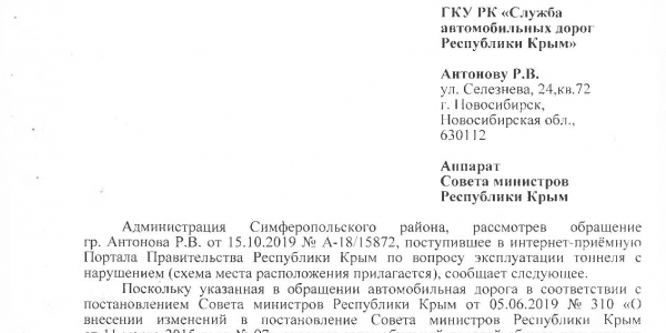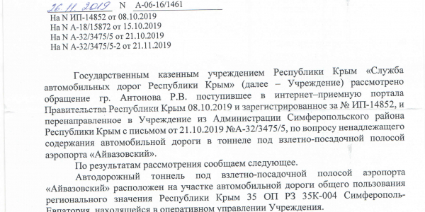 Номер жалобы:60769 Тип жалобы:Прочее Название объекта: Регион:Республика Крым Адрес:площадь Воссоединения, 1 Описание жалобы:Трасса проходящая через тоннель, отмечен на приложенном скрине карты, под взетно-посадочной полосой аэропорта Айвозовского эксплуатируется с нарушениями: