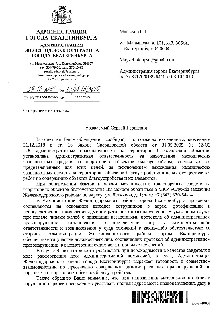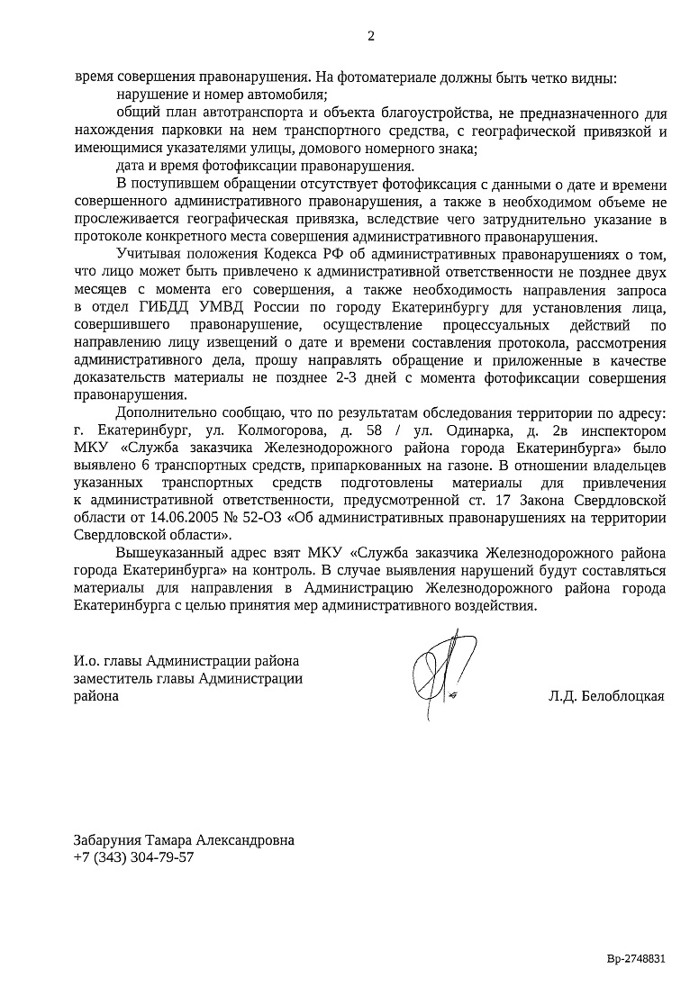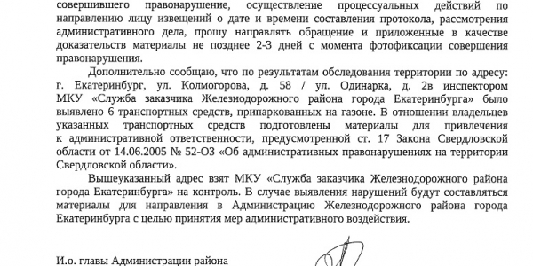 Номер жалобы:60802 Тип жалобы:Прочее Название объекта: Регион:Свердловская область Город:Екатеринбург Адрес:улица Одинарка, 2В Описание жалобы:Водитель данного автомобиля припарковался на газоне, во дворе дома по адресу ул.Колмогорова д. 58/Одинарка 2В Статус: