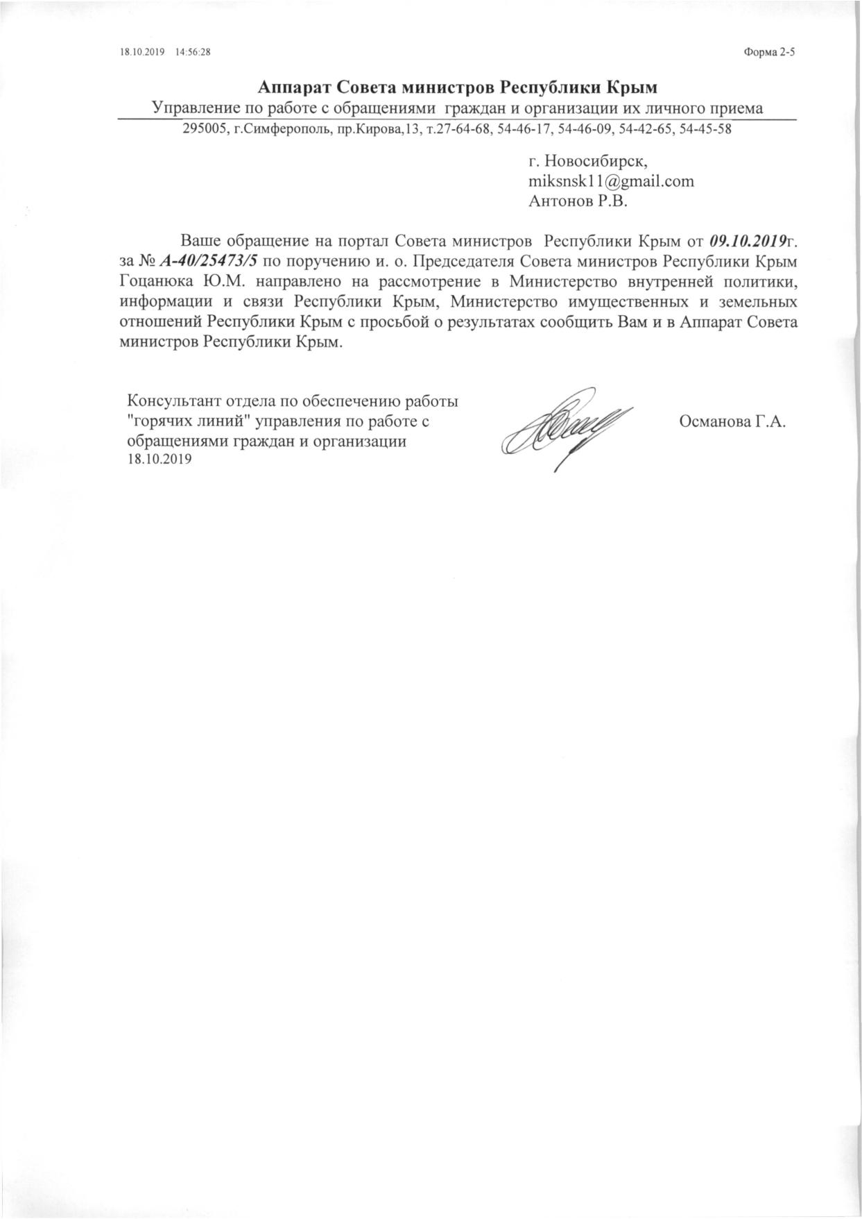 Номер жалобы:60804 Тип жалобы:Прочее Название объекта: Регион:Республика Крым Город:Симферополь Адрес:проспект Кирова, 13 Описание жалобы: Премьер министру республики Крым Андрееву Владимиру Константинову.