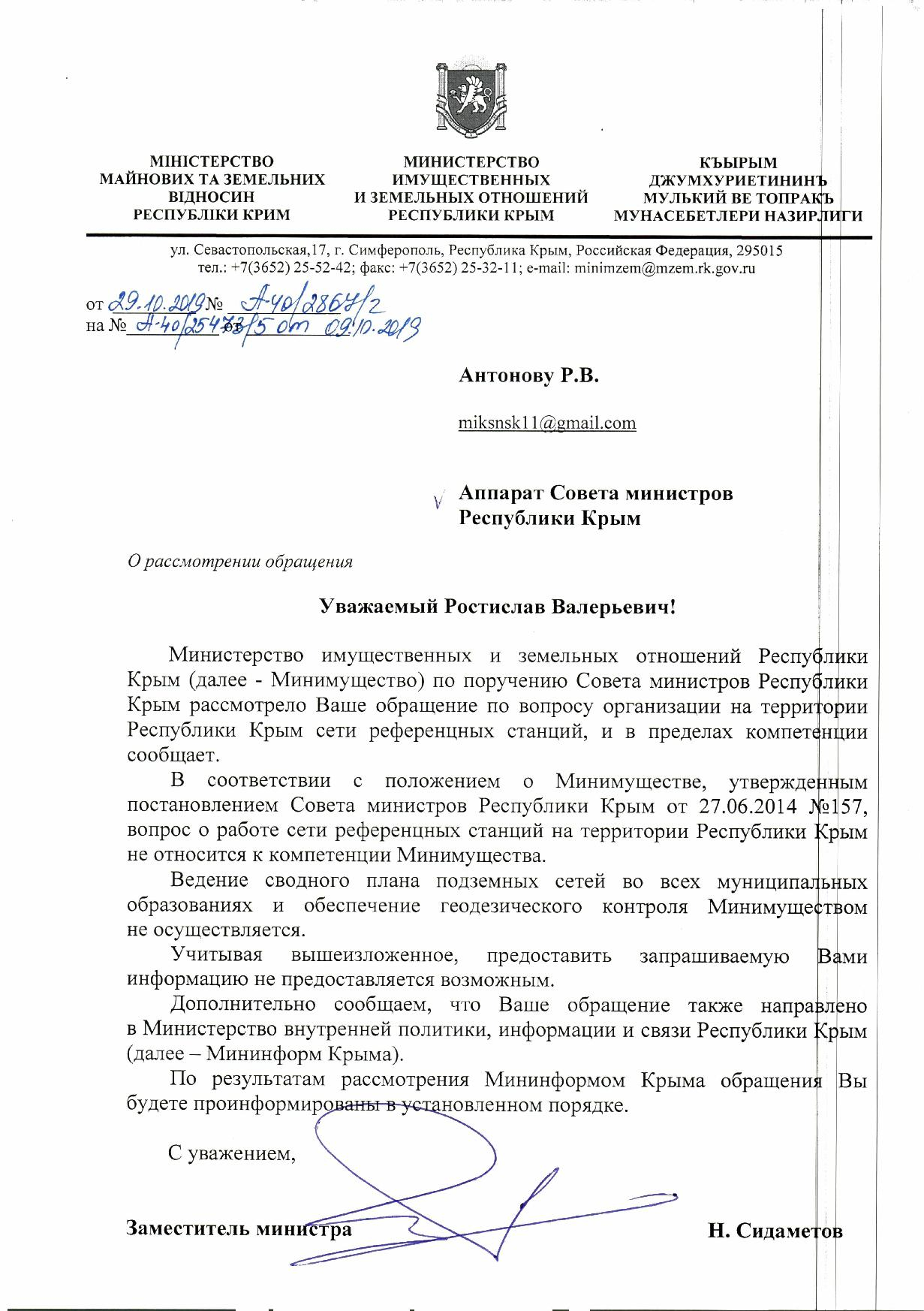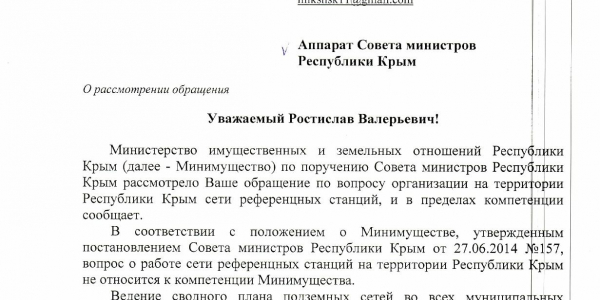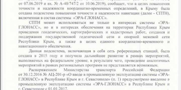 Сообщаю, что в республике Крым на бумаге запущена сеть спутниковых референцных станций, но на деле ее нет, станции не установлены, не работают.
