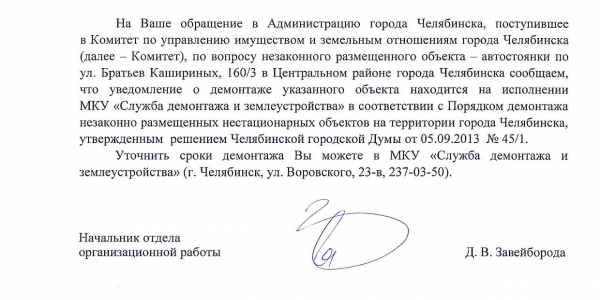 Номер жалобы:60787 Тип жалобы:Прочее Название объекта: Регион:Челябинская область Город:Челябинск Адрес:улица Братьев Кашириных, 160/3 Описание жалобы:Незаконная парковка Статус: